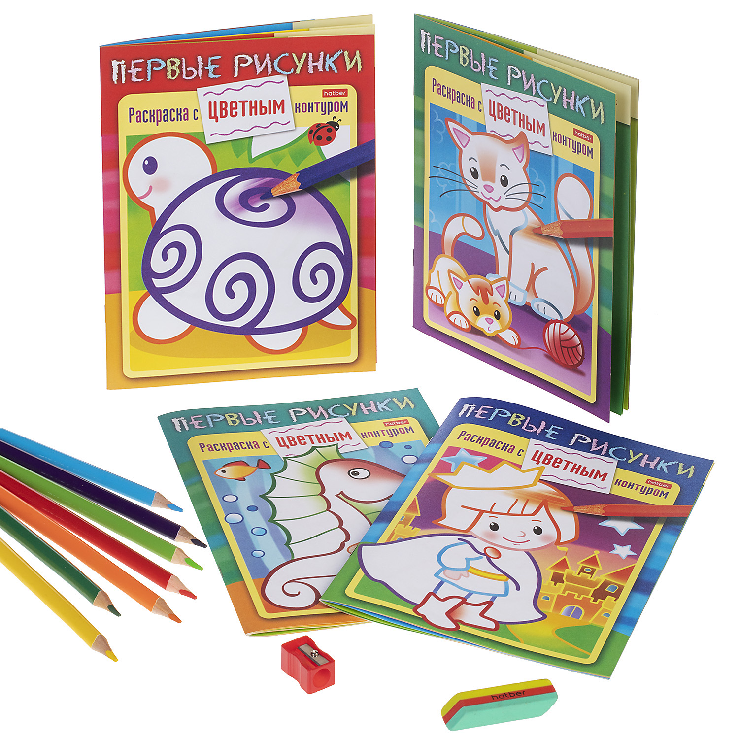 Сегодня знакомим вас с новой серией раскрасок А5-формата 8 листов «Первые рисунки» с цветным блоком и цветным контуром. Рисунки созданы с учётом возрастных особенностей малышей и их интересов, поэтому все элементы и детали крупные с широким контуром. Это помогает ребёнку понять границы рисунка и подсказывает ему каким цветом будет лучше раскрасить ту или иную деталь. Все картинки добрые и легко узнаваемые, а это усиливает интерес ребёнка к занятию и стремлению увидеть результат своего творчества.