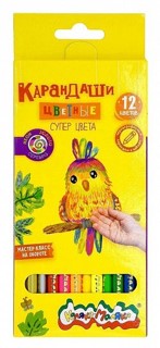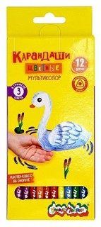 Набор цветных карандашей «Каляка-Маляка» «Мультиколор» 12 шт., дерево, трёхгранный корпус, картонная упаковка, принт на корпусе, супермягкий грифель