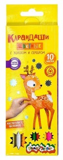 Набор цветных карандашей «Каляка-Маляка» 10 цветов с золотом и серебром, дерево, трёхгранный корпус, картонная упаковка