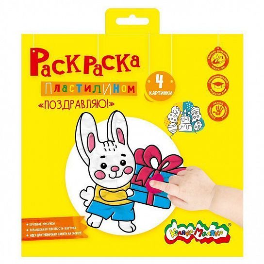 Раскраска пластилином «Каляка-Маляка» «Поздравляю!» 4 карт. 200х200 в папке-конверте
