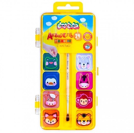Акварель «Каляка-Маляка» 24 цвета, с кисточкой, пластиковая упаковка с европодвесом