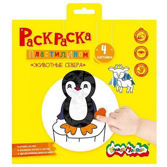 Раскраска пластилином «Каляка-Маляка» «Животные севера» 4 карт. 200х200 мм в папке-конверте