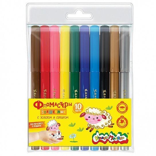 Фломастеры волшебные «Каляка-Маляка» 10 цветов с золотом и серебром, круглый корпус с трёхгранным захватом, блистер, 3+