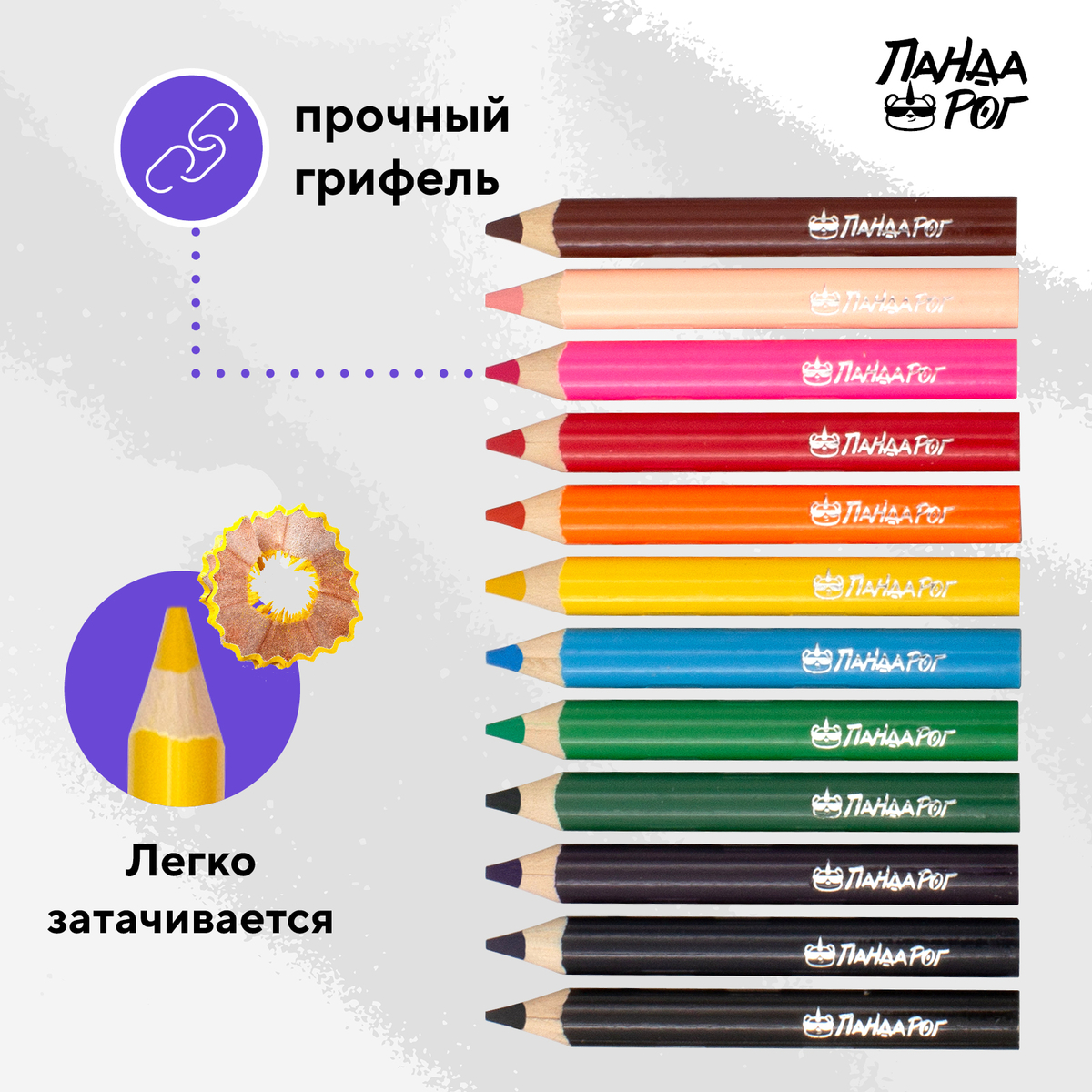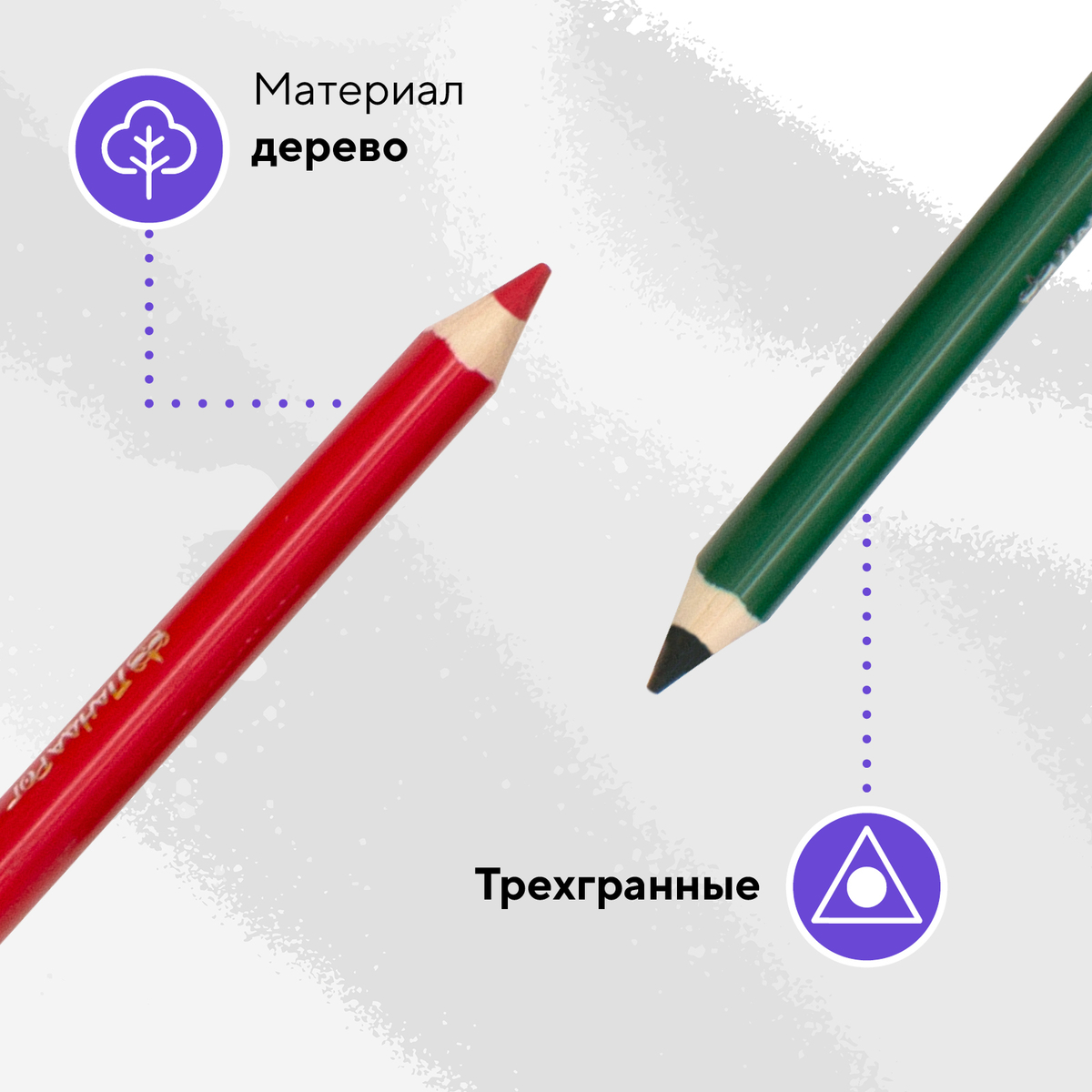 - Карандаши поставляются заточенными в цветной картонной упаковке на пластиковой подложке.