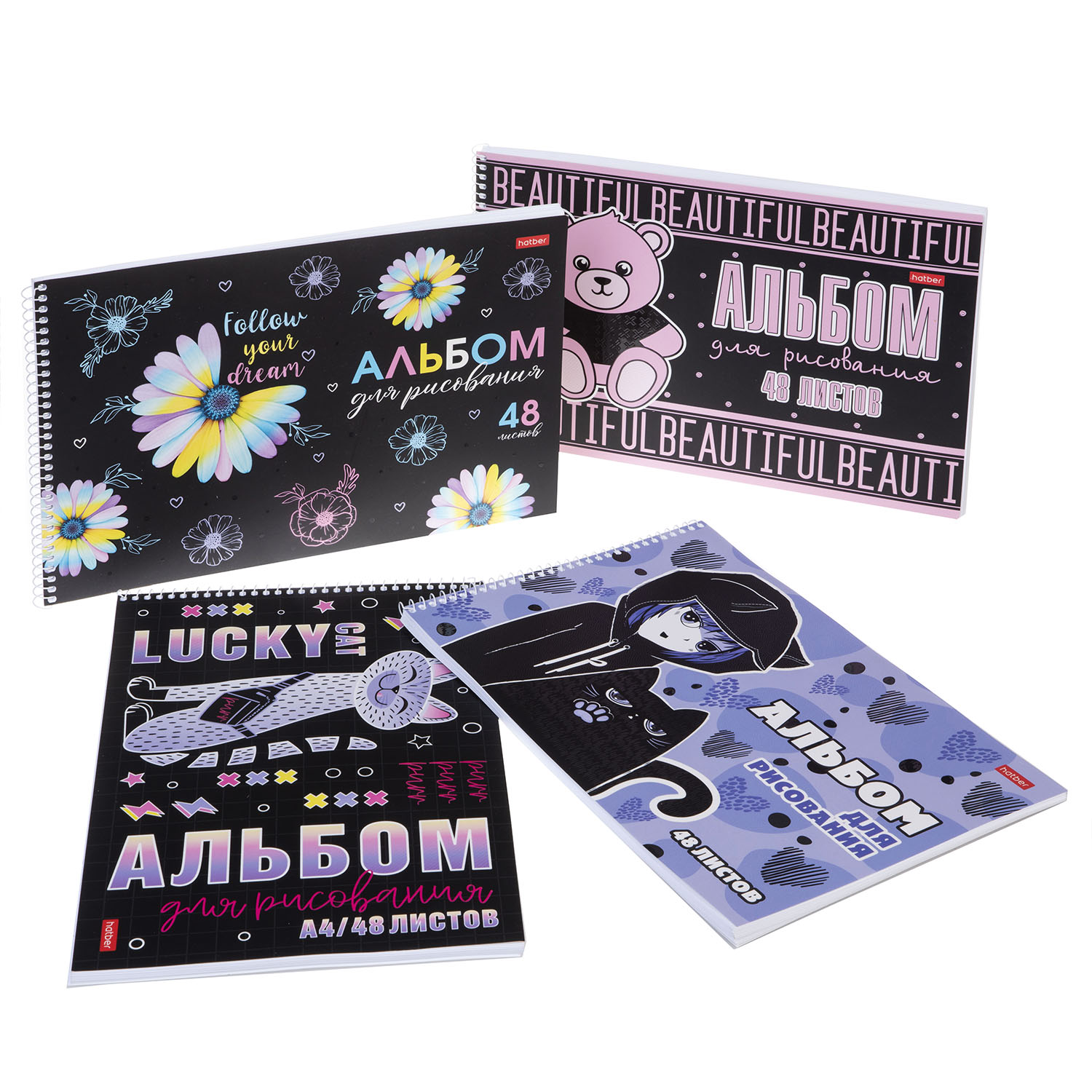 Три новые серии альбомов для рисования А4-формата 48 листов на спирали. Обложки которых изготовлены из высококачественного мелованного картона с мягкой матовой ламинацией и дополнены разными спецэффектами.