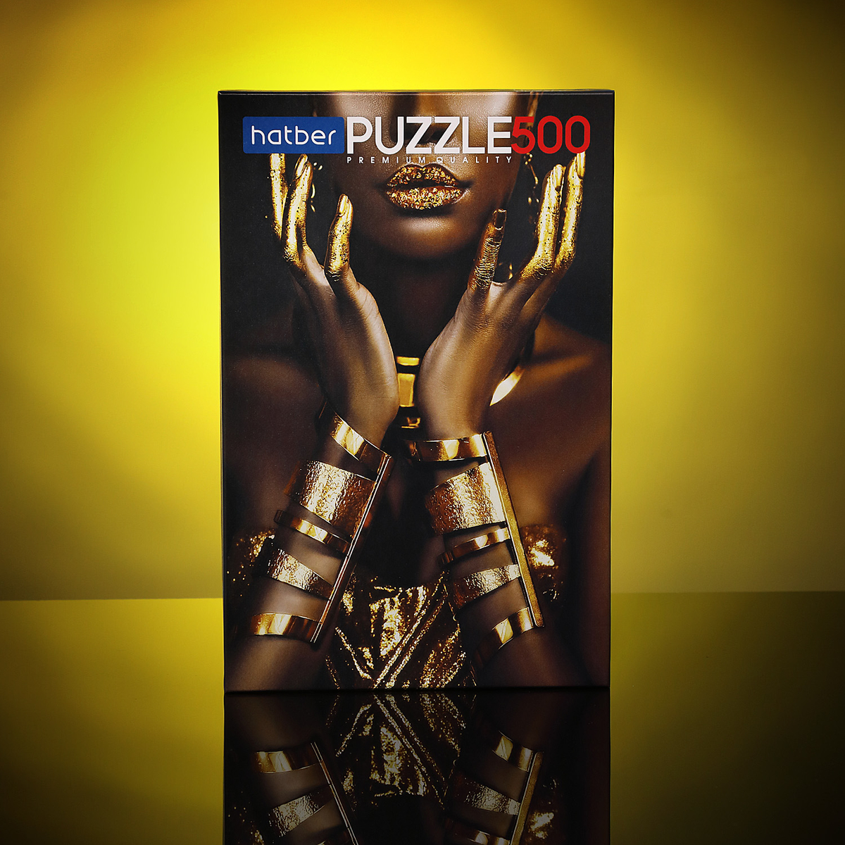 Дизайн пазла Golden Lady — это роскошная фэшн-фотография темнокожей модели с потрясающим блестящим макияжем, и стильными золотыми украшениями. Сборка этого пазла непременно доставит вам удовольствие.