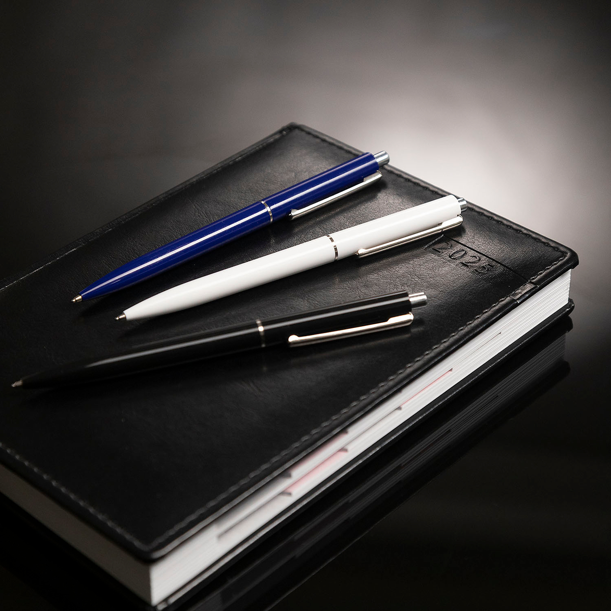 Аккуратный корпус с минимумом деталей, удобный и надёжный клип. Сочетание классических цветов с металлическими тонкими элементами выглядит изящно, минималистично и нейтрально. Для школы, дома или офиса - одинаково прекрасно. Ручки выпускаются в чёрном, белом и синем цветах.