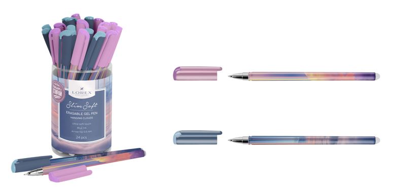 Ручка гелевая LOREX HANGING CLOUDS, серия Slim Soft, со стираемыми чернилами, круглый прорезиненный корпус, синие чернила, 0,5 мм (2 принта).