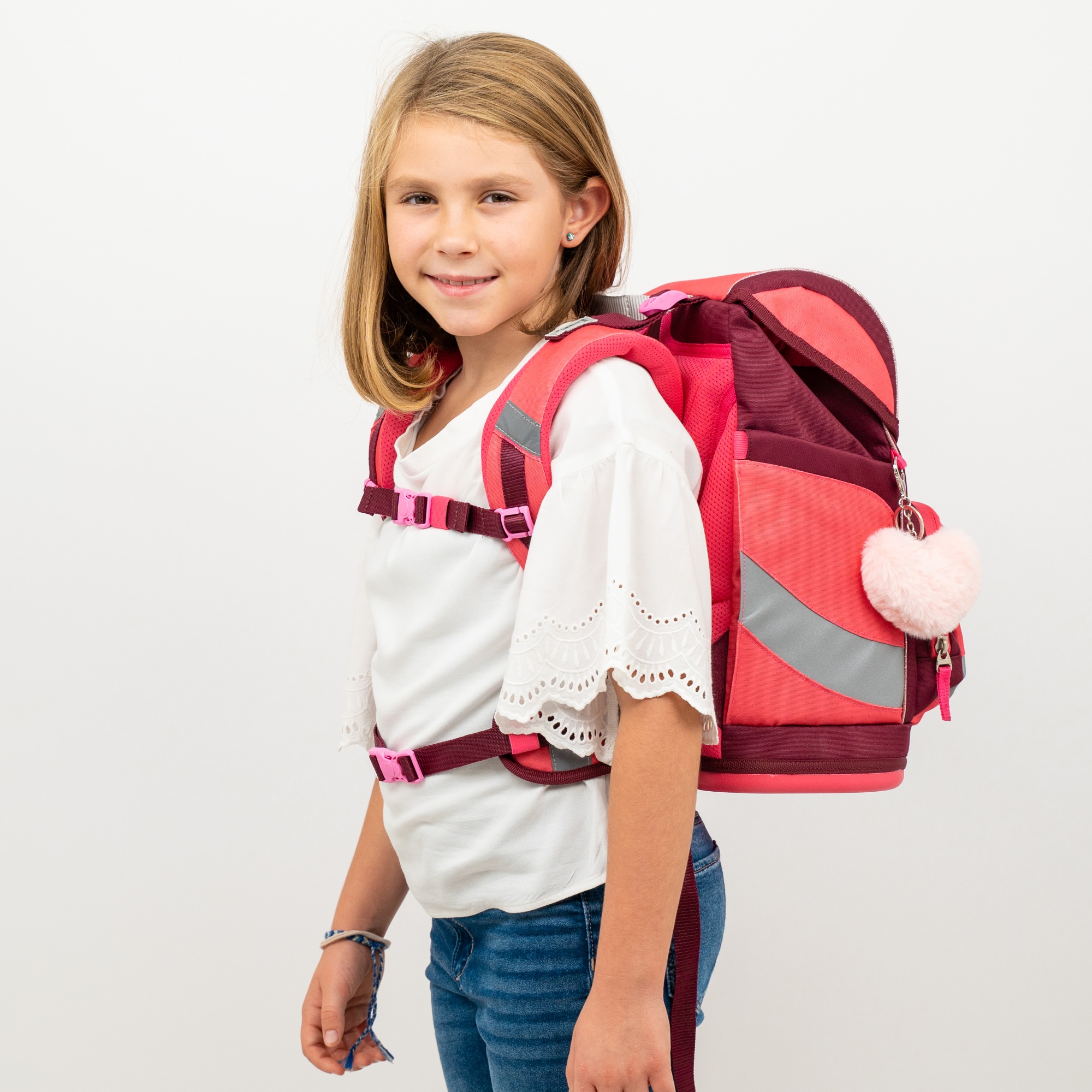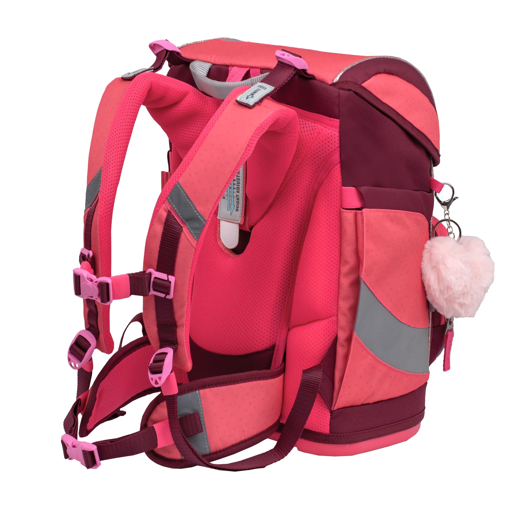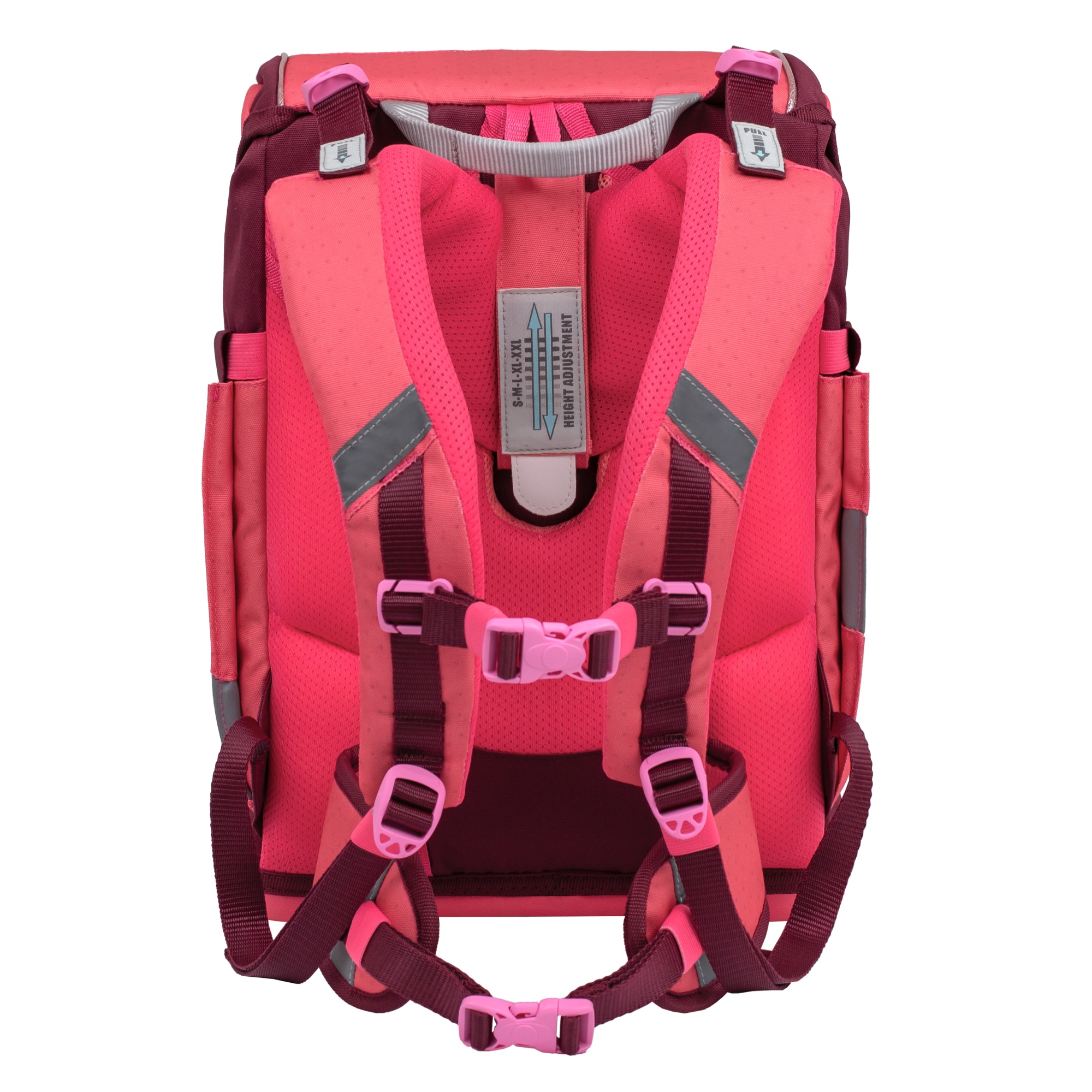 Эргономичный рюкзак Belmil для начальной школы с системой регулировки высоты — спинку можно отрегулировать под рост ребенка. Удобные наплечные лямки, которые также можно изменить под рост ребёнка, нагрудный и набедренный ремни надежно фиксируют рюкзак на спине, оберегая позвоночник от нагрузок.