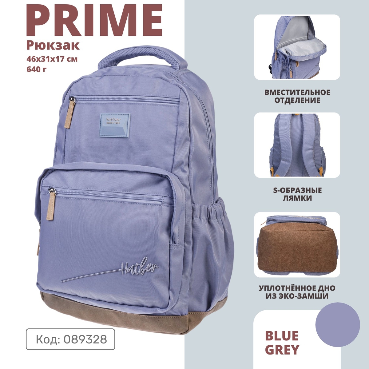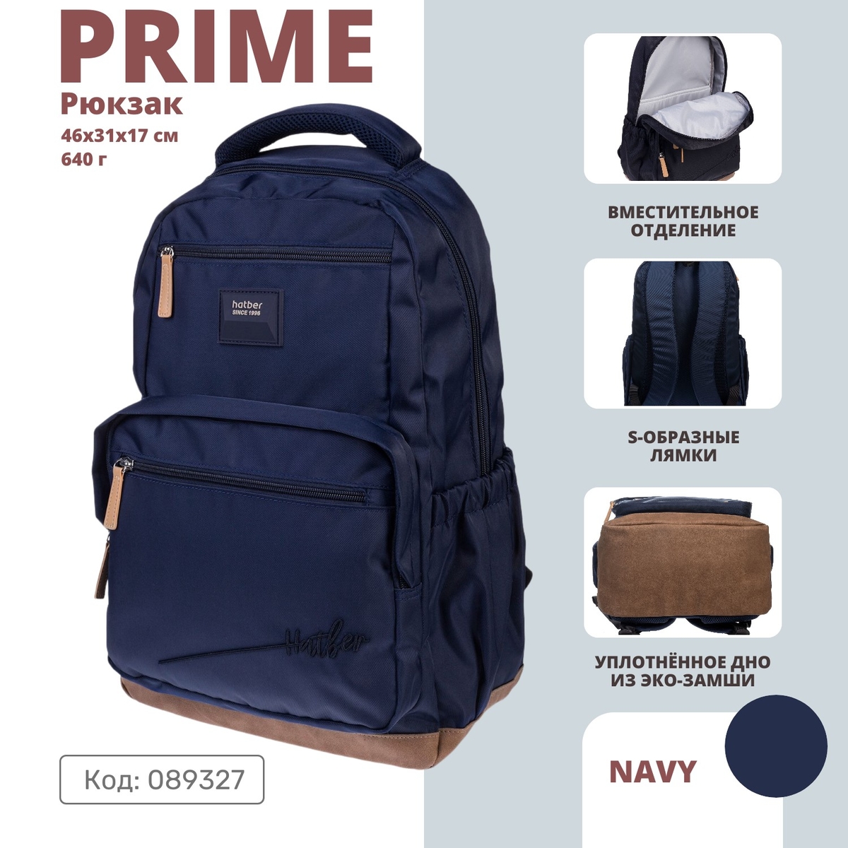 В Hatber такой рюкзак есть! Представительный рюкзак PRIME — отличный и универсальный выбор для тех, кто не привык загружать гардероб лишними аксессуарами. Лаконичный, но стильный дизайн, декорированный вышивкой, нейтральные унисекс-цвета, уместные в любом образе, классическая форма и надёжное качество — вот прочная база этой модели.