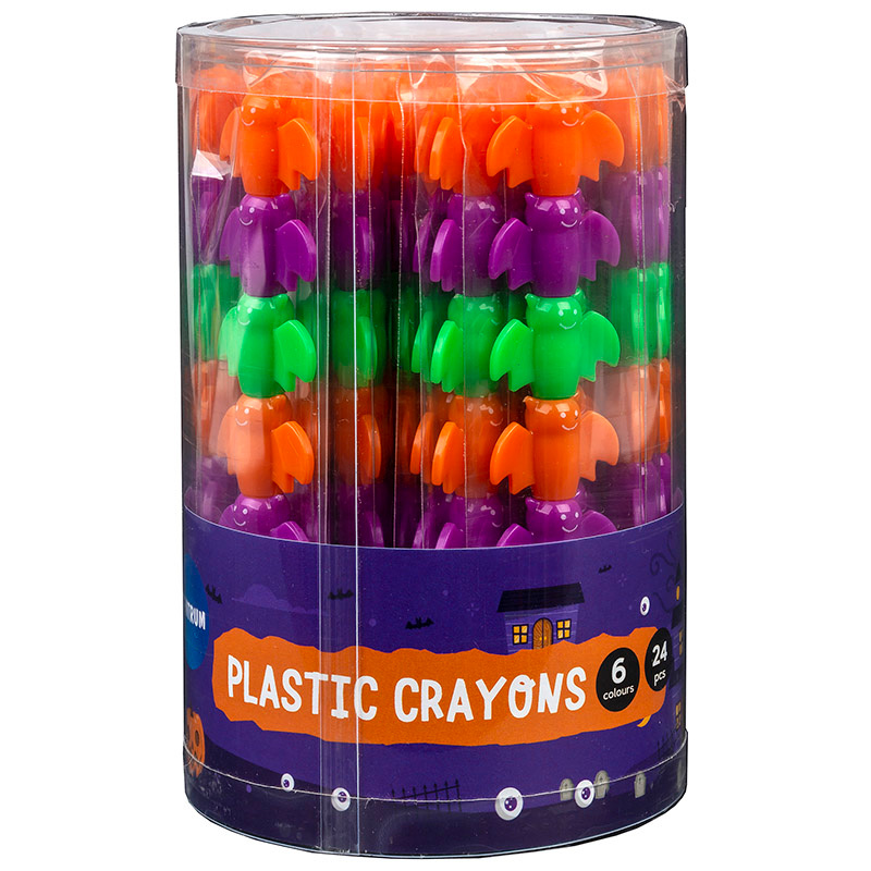 С восковыми мелками HALLOWEEN теперь все цвета под рукой. Просто переставляйте каждый сегмент, выбирая нужный цвет. Повышенное содержание пигмента обеспечивает насыщенность и яркость цветов. Отличаясь высокой жирностью, мелки оставляют глянцевый хорошо заметный след, на любой бумажной поверхности. Благодаря особой мягкости плавно и мягко скользят по бумаге, позволяя быстро закрашивать большие участки поверхности. Мелки представлены в пластиковом корпусе с фигурными сегментами. Каждый сегмент выполнен в цвет мелка.