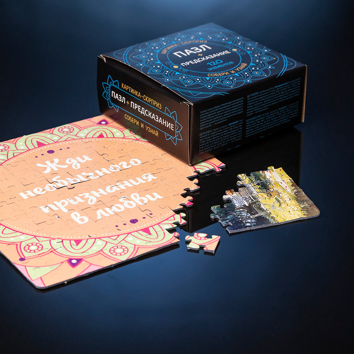 Мы рады представить вам новую загадочную серию пазлов «СЮРПРИЗ-ПРЕДСКАЗАНИЕ»! Каждый пазл состоит из 120 элементов, и в каждой коробке вас ждёт не только увлекательный процесс сборки, но и уникальное предсказание!
