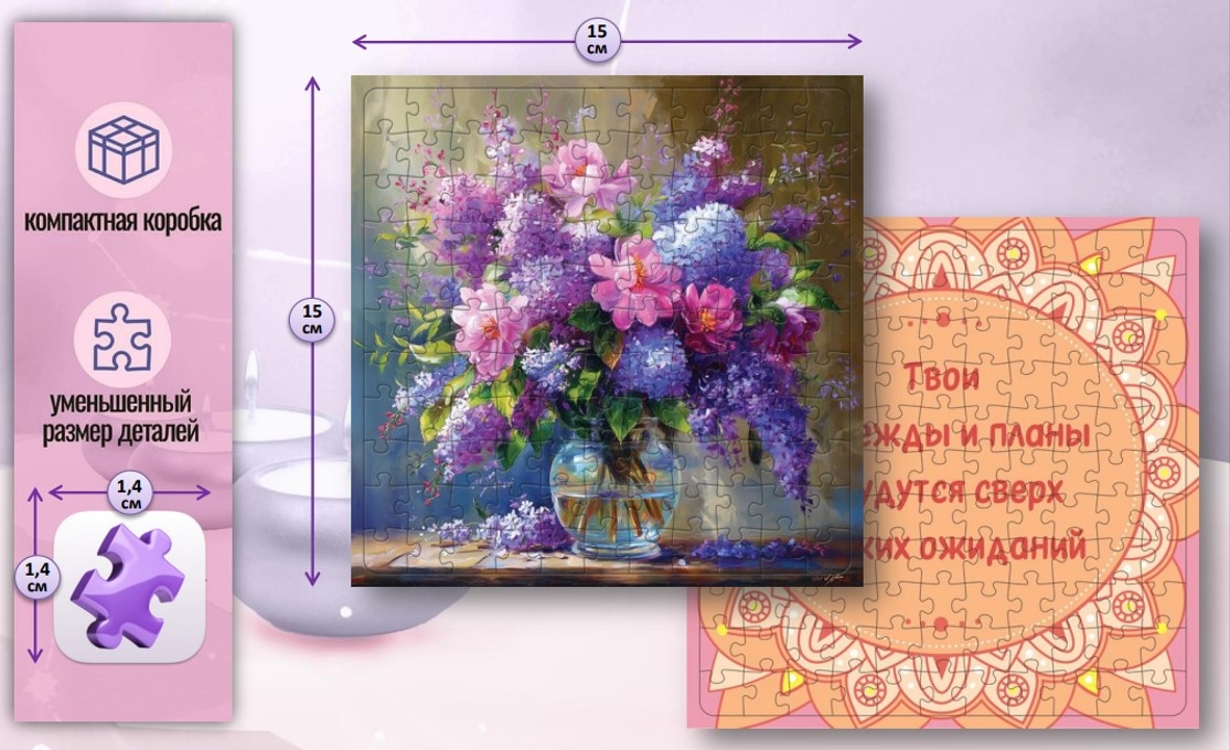 Как это работает? Соберите картинку, а затем переверните её — на обратной стороне вас ждёт удивительное предсказание, которое добавит немного магии в ваш день. В серии представлено 24 уникальных изображения, каждое из которых сопровождается оригинальным предсказанием, что делает каждую сборку поистине особенной.