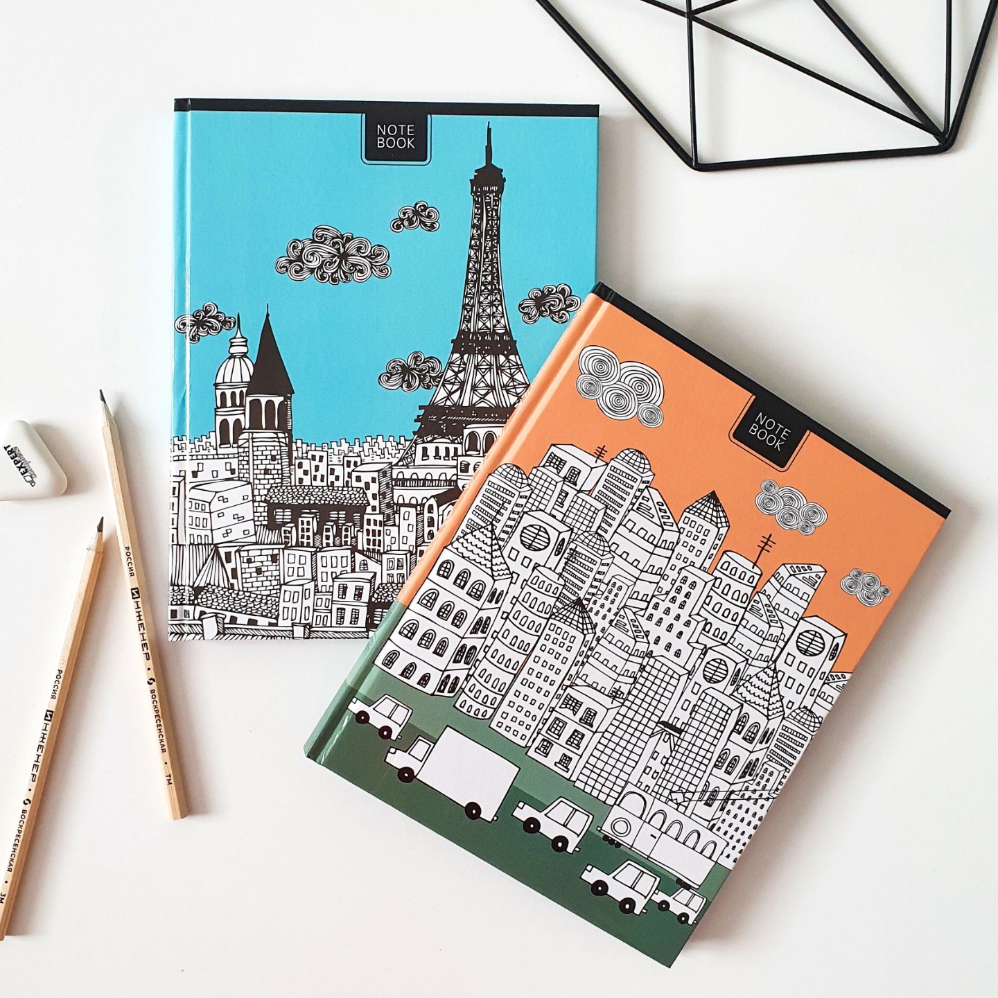 чёрно-белой графике блокнотов «Архитектура» и «График-сити». Минимум цвета,