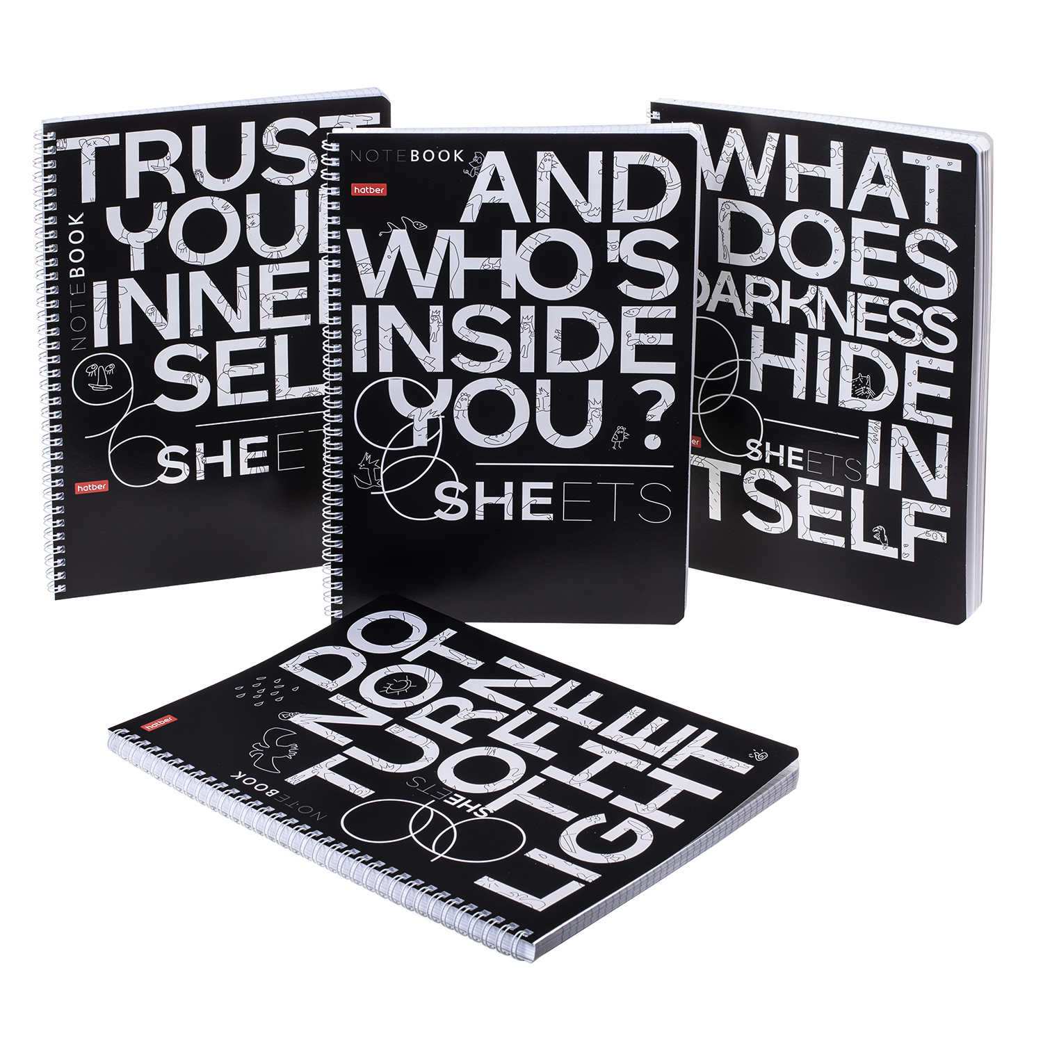 Представляем вам пополнение серии In the dark в А4-формате 96 листов на гребне, которые напомнят вам, что вы притягиваете к себе то, во что верите! Обложка дополнена выборочным лаком, который выделяет тетради из ряда подобных, призывая вас не только разглядеть, но и потрогать. Внутренний блок имеет универсальную перфорацию, а скрепление гребень даёт возможность раскрывать тетрадь на 360 градусов.