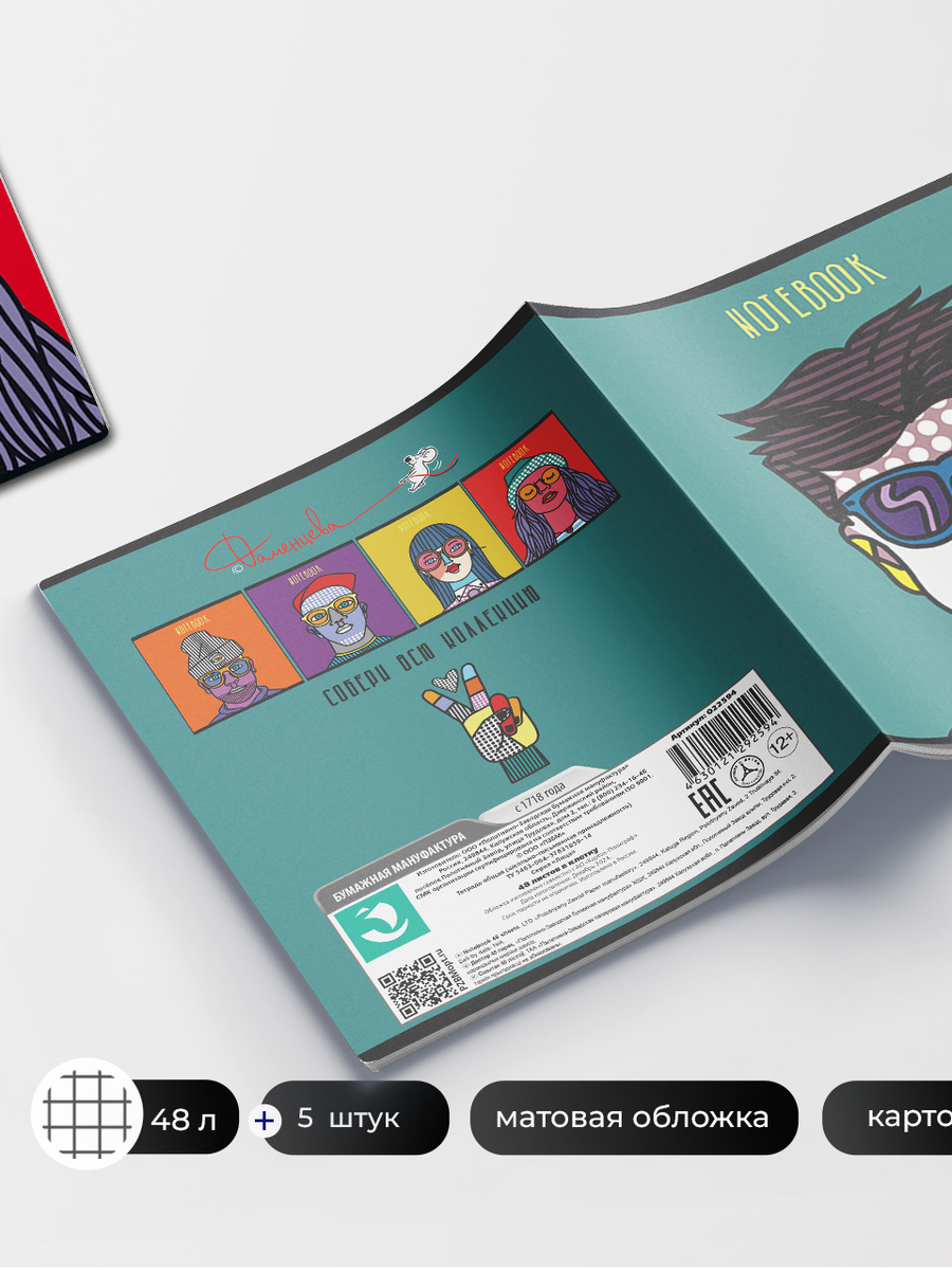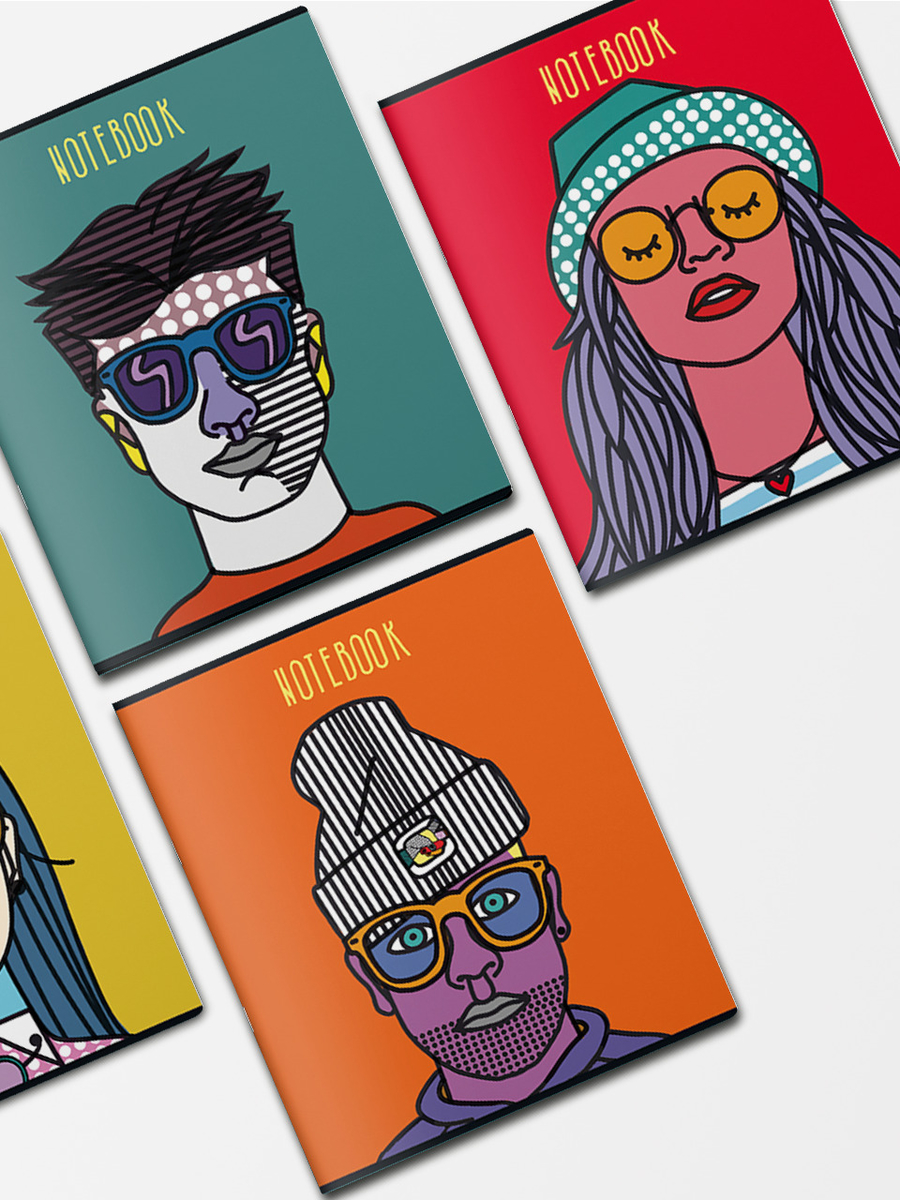 Серия «Лица» — это взрыв красок и эмоций, кричащий: «Эй, посмотри на меня!». На обложках — крупные поп-арт портреты людей, словно сошедшие с полотен современной галереи. Зелёный, фиолетовый, оранжевый, жёлтый, красный — здесь нет места скучным оттенкам! Каждое лицо — это манифест: яркое, дерзкое, живое. А матовая ламинация и лак Брайля добавляют обложке глубины, которую хочется трогать снова и снова.