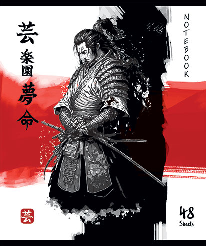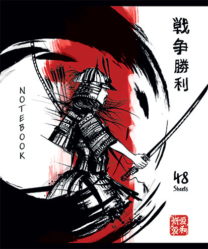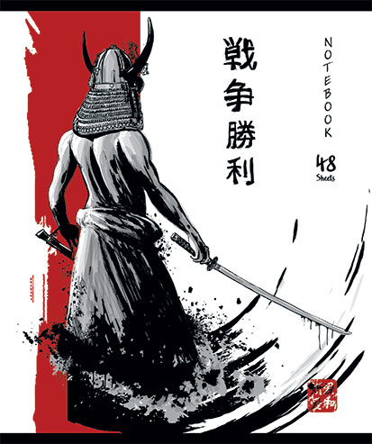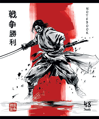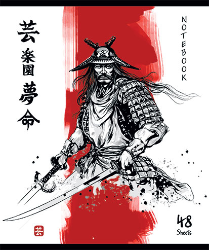Обложка тетрадей украшена яркими иллюстрациями самураев с катанами, окружёнными загадочными японскими иероглифами и выполнена с использованием твин УФ-лакирования, что придаёт обложке блеск и защищает от повреждений.