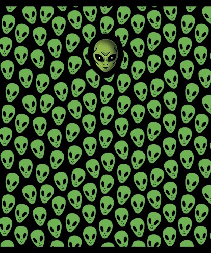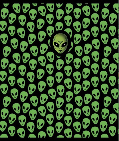 Мы постарались открыть завесу тайны с помощью необычной обложки с вырубкой, под которой находится ещё одна уже непосредственно с инопланетянином.