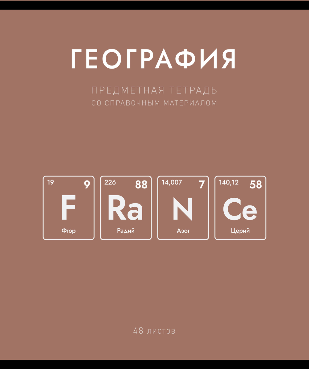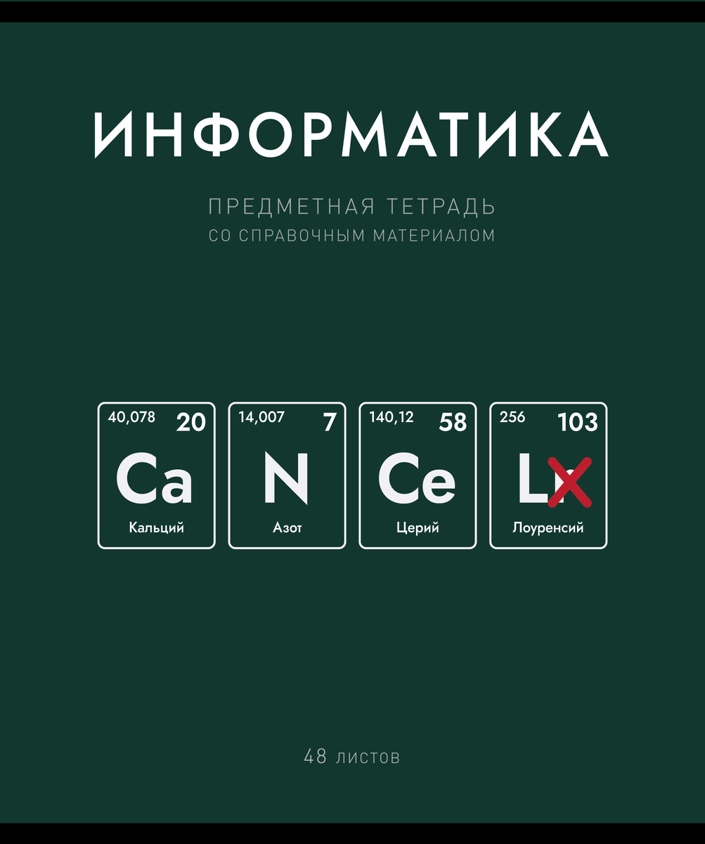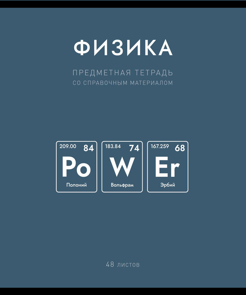 На обложках тетрадей — игра слов с элементами из периодической таблицы Менделеева, создающая забавные и остроумные надписи. Каждая тетрадь — это химический ребус, вдохновляющий на познание нового. Справочная информация напечатана на обороте обложки.