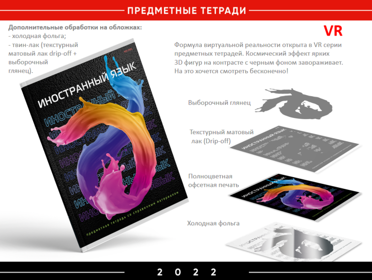 Формула виртуальной реальности открыта в VR-серии предметных тетрадей. Космический эффект ярких 3D-фигур на контрасте с чёрным фоном завораживает. На это хочется смотреть бесконечно!