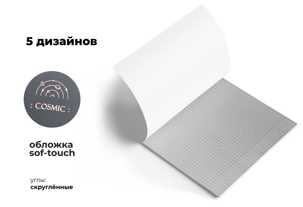 Встречайте: серия тетрадей «Космик»! В серии 5 тетрадей — формат А5+, 48 листов на скрепке, скруглённые углы и утончённый минималистичный дизайн.
