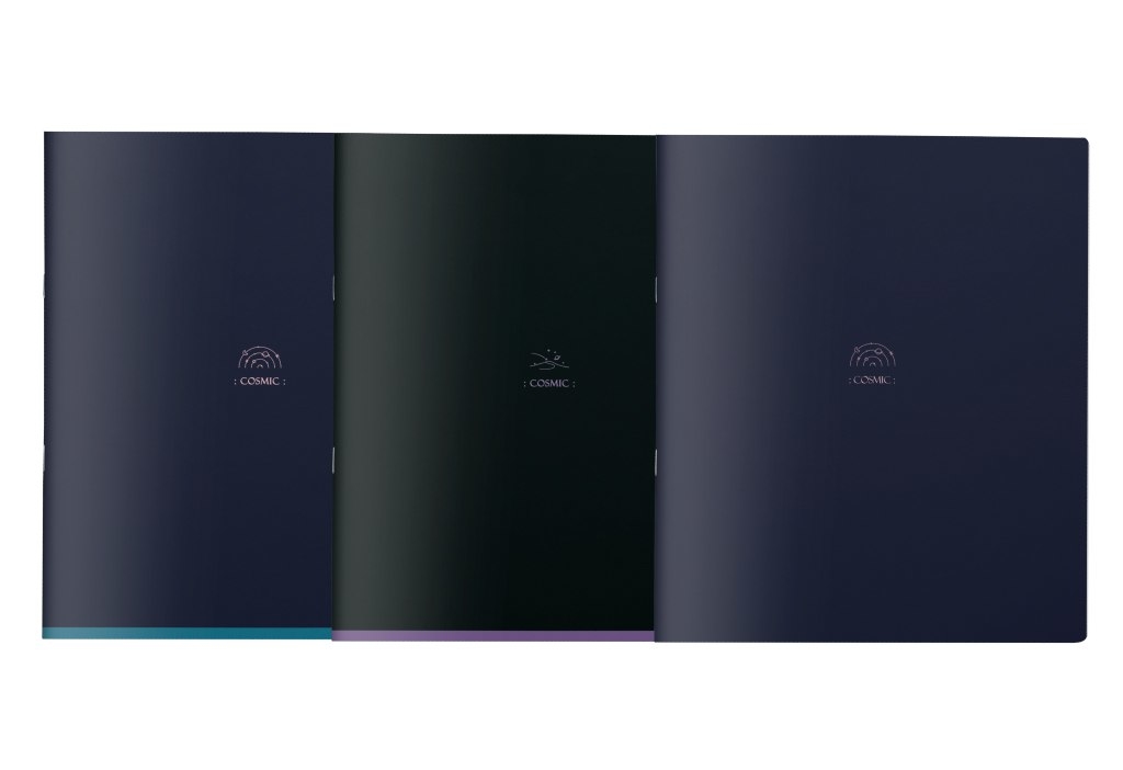 Обложки выполнены с использованием Soft Touch ламинации: приятные на ощупь, с лёгким шёпотом космоса в виде едва заметного символа. А внутри — серая линовка, которая не раздражает глаза.