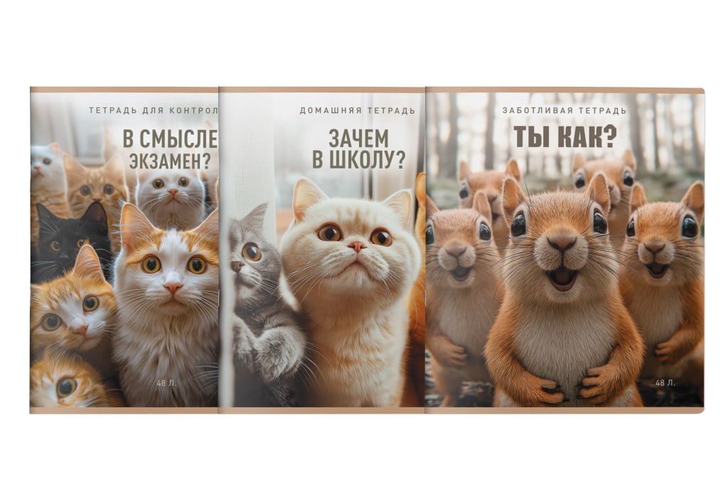 Встречайте новую серию 48 листов, которая разлетится быстрее, чем школьники с последнего урока! Мы объединили трендовые мемы с животными и топовые технологии отделки. Это тетради, которые хочется не только купить, но и потрогать!