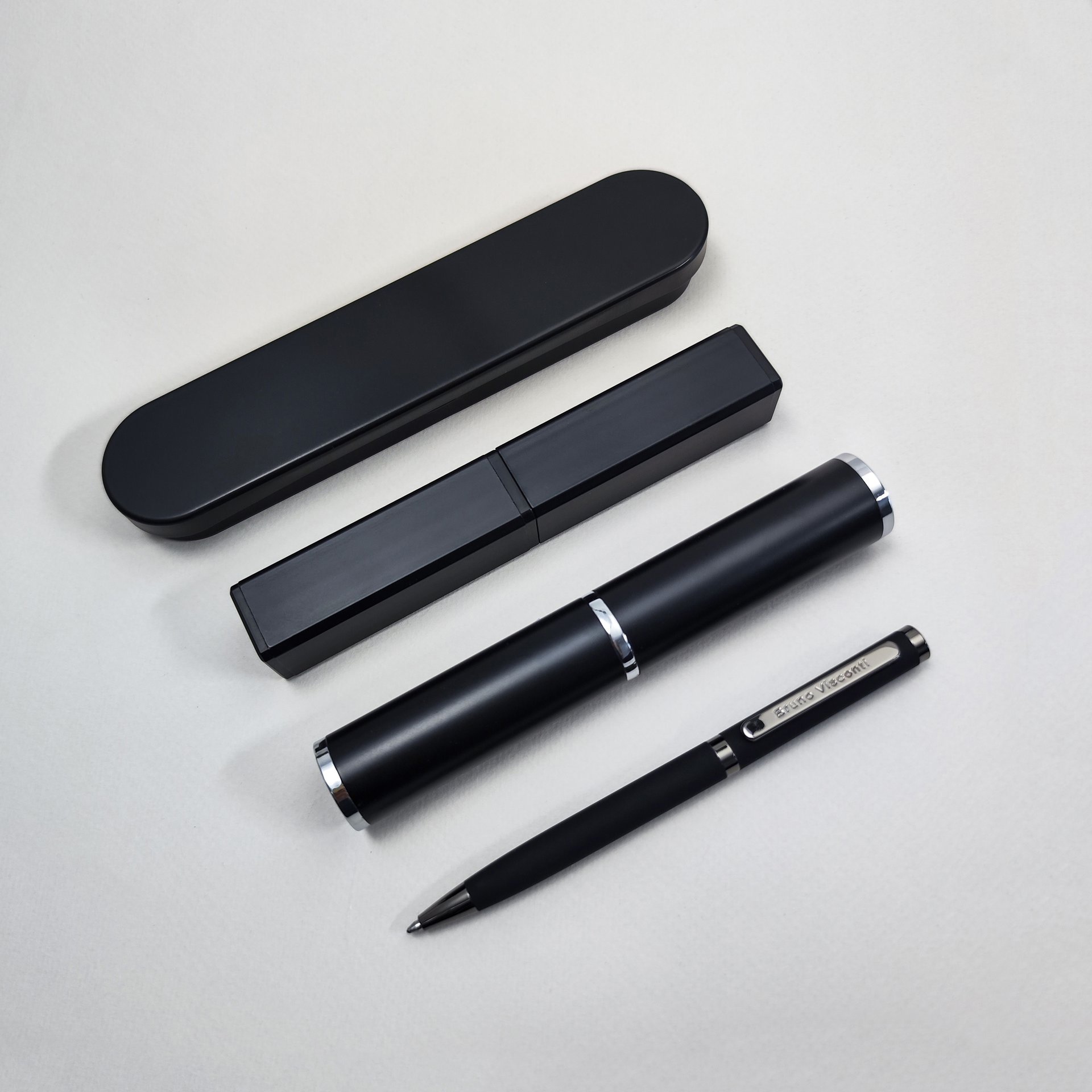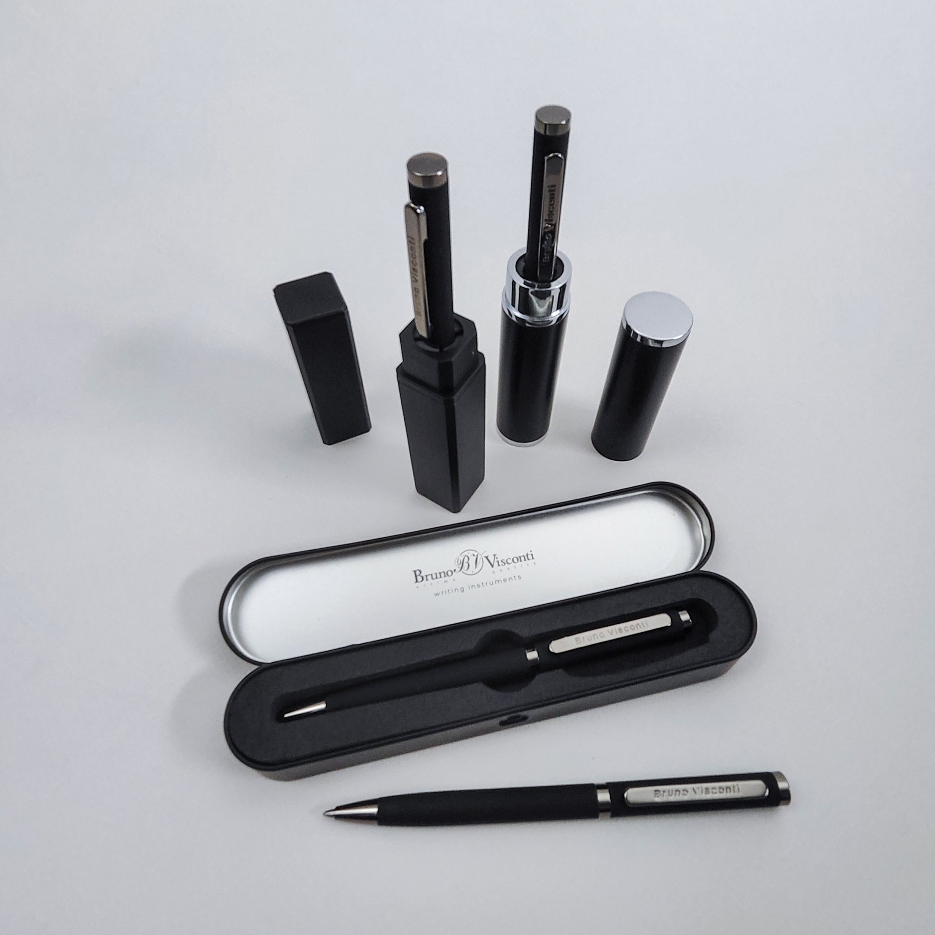 Лаконичный дизайн, прочный металлический корпус, строгость формы подчеркнут статус владельца ручки. Удобство в эксплуатации и тактильно приятные ощущения подарит бархатистое покрытие soft touch.