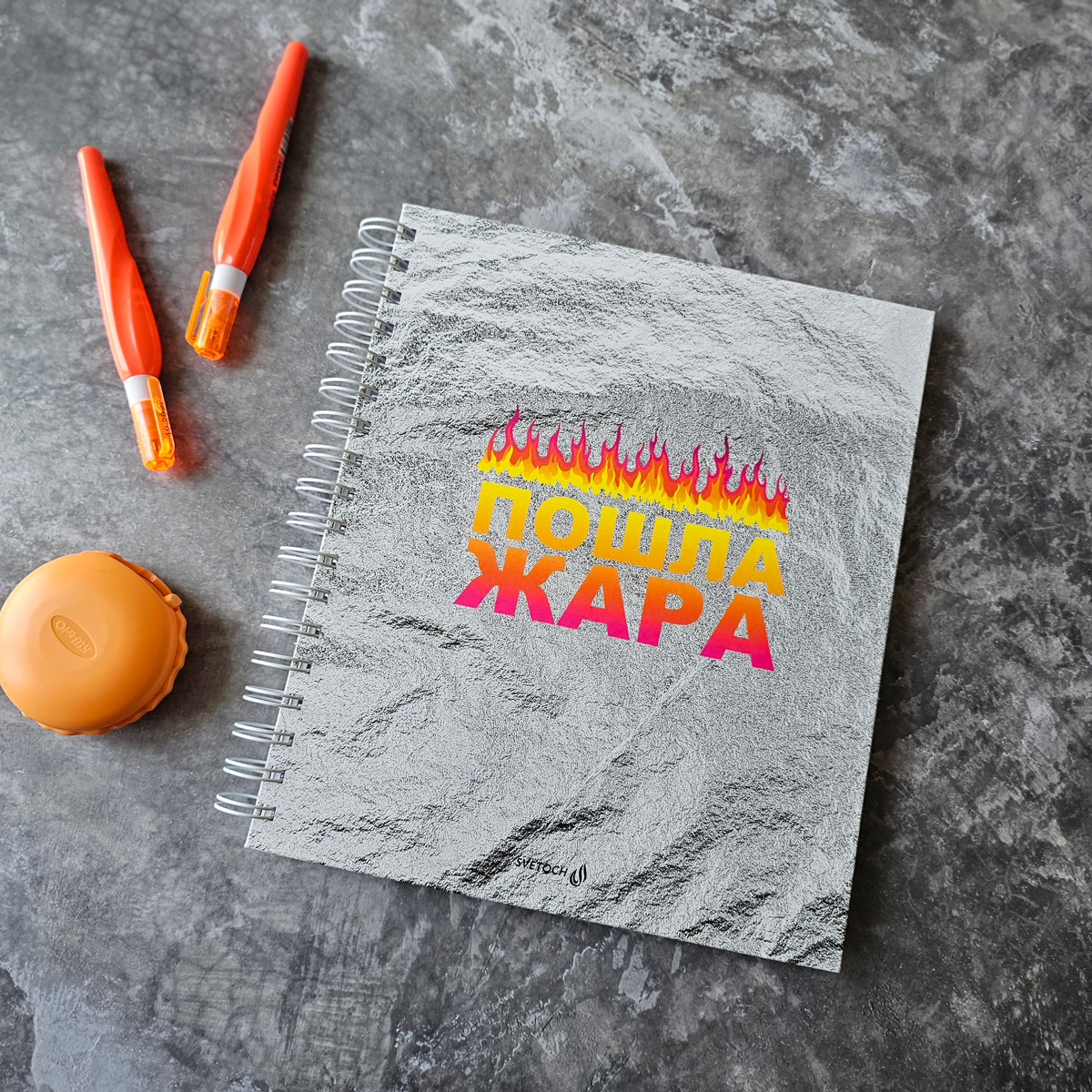 Вдохновение иногда врывается в голову на ровном месте, и тогда карандаш уже не остановить! Артбук от SVETOCH «Жара» как раз об этом. Яркий огонь и фон, текстурой напоминающий огнеупорную ткань — бумага выдержит весь напор творчества!
