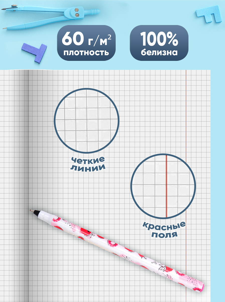 - Внутренний блок с четко прочерченной линовкой и красными полями.