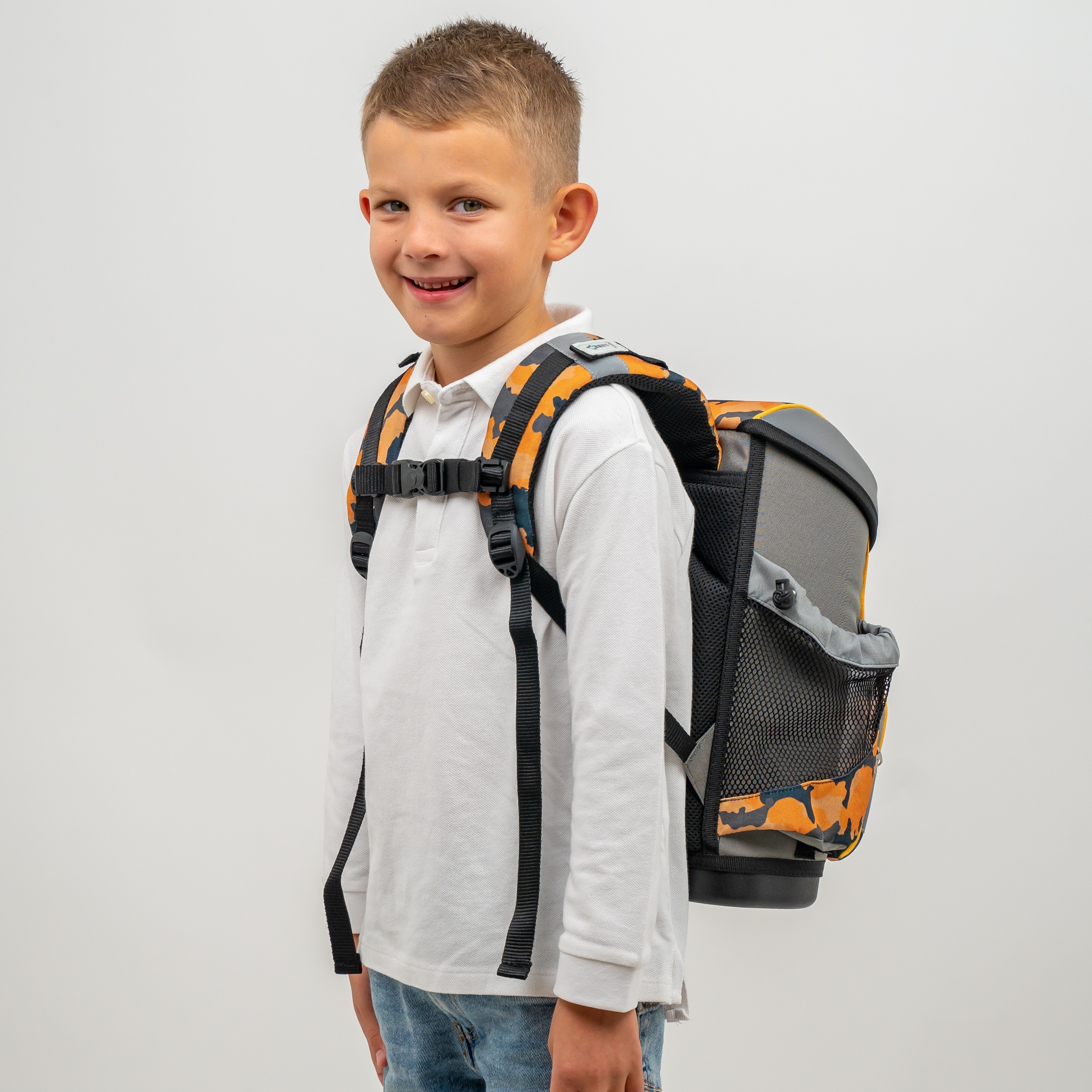 В обновлённых моделях Belmil MINI-FIT новая конструкция спинки с регуляторами вертикального положения, которая снижает нагрузку на позвоночник и позволяет беречь осанку школьника. Регулируемые наплечные лямки и регулируемый по росту нагрудный фиксатор, мягкая и удобная ручка для переноски.