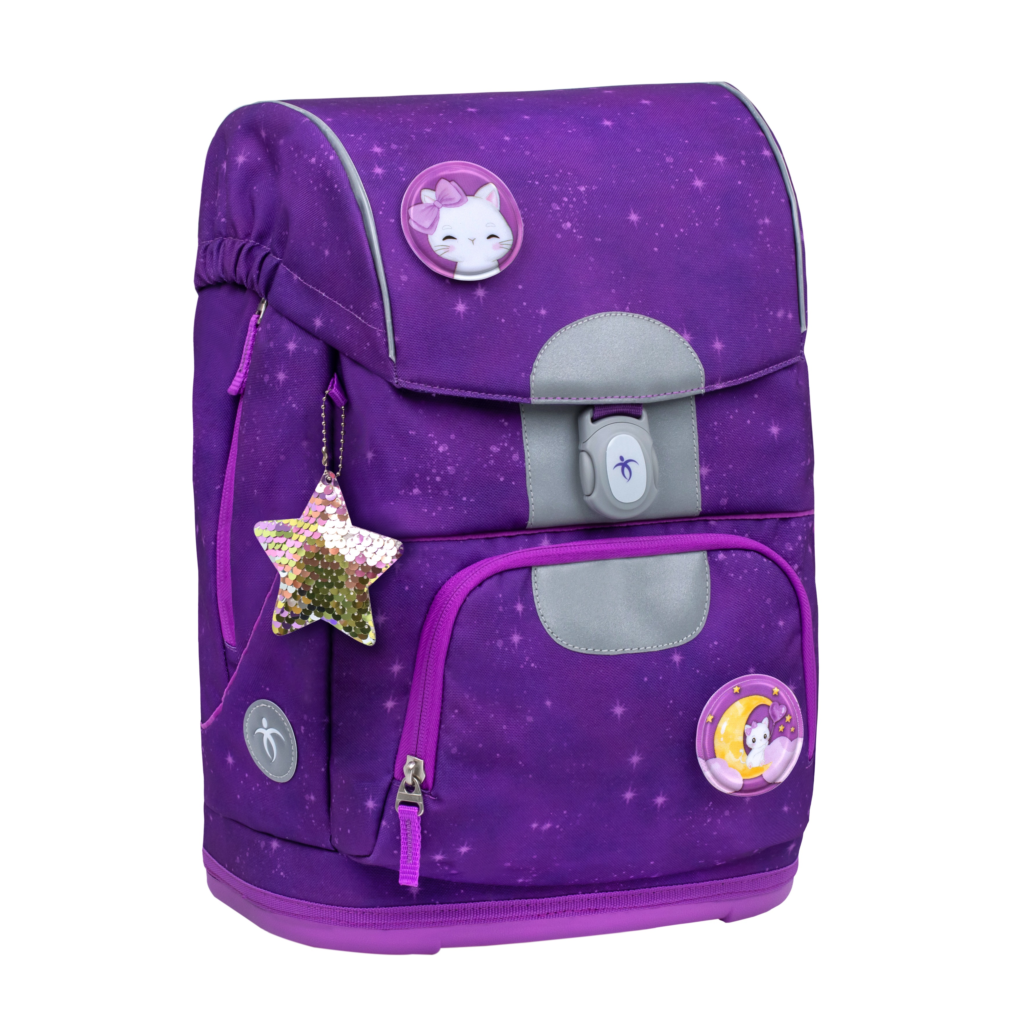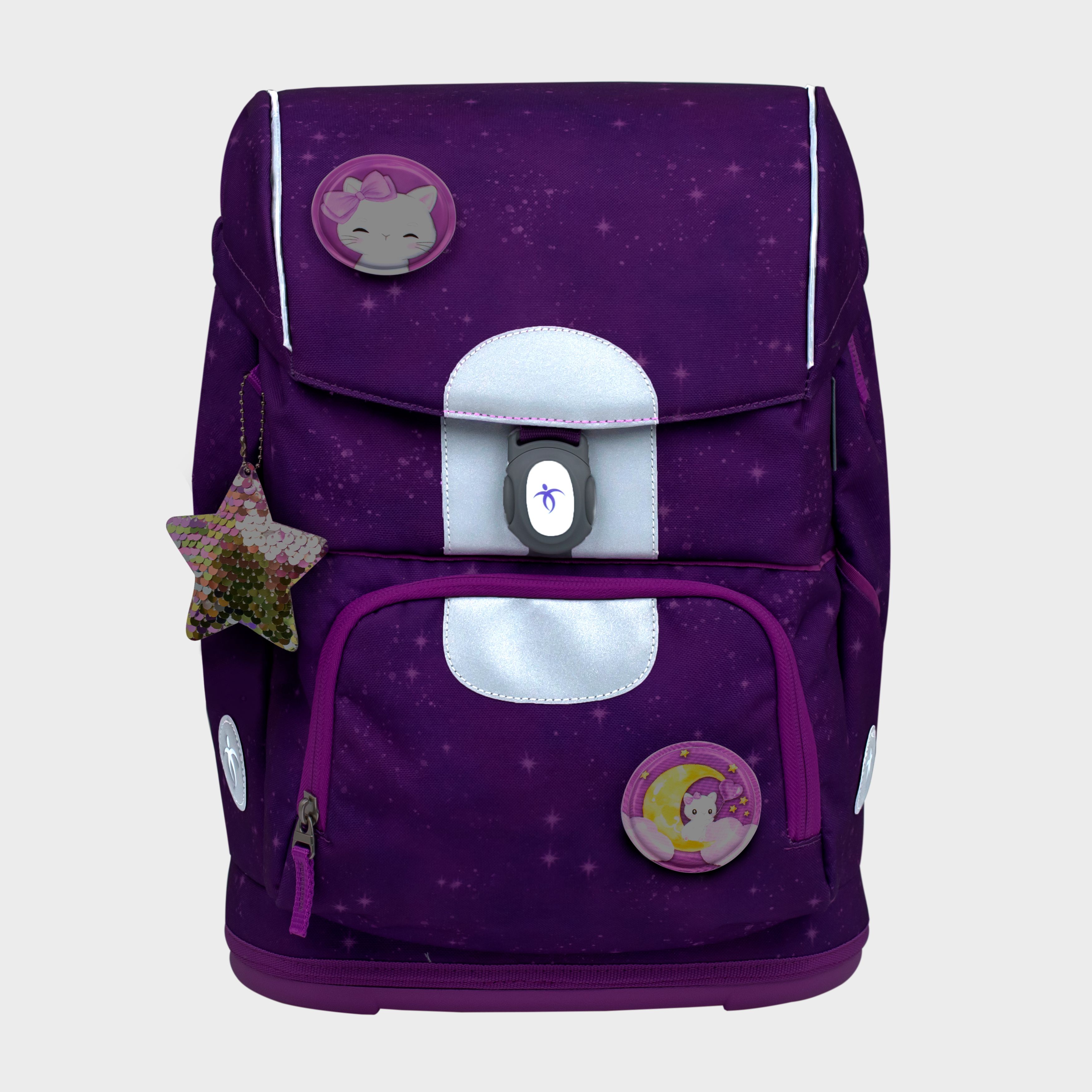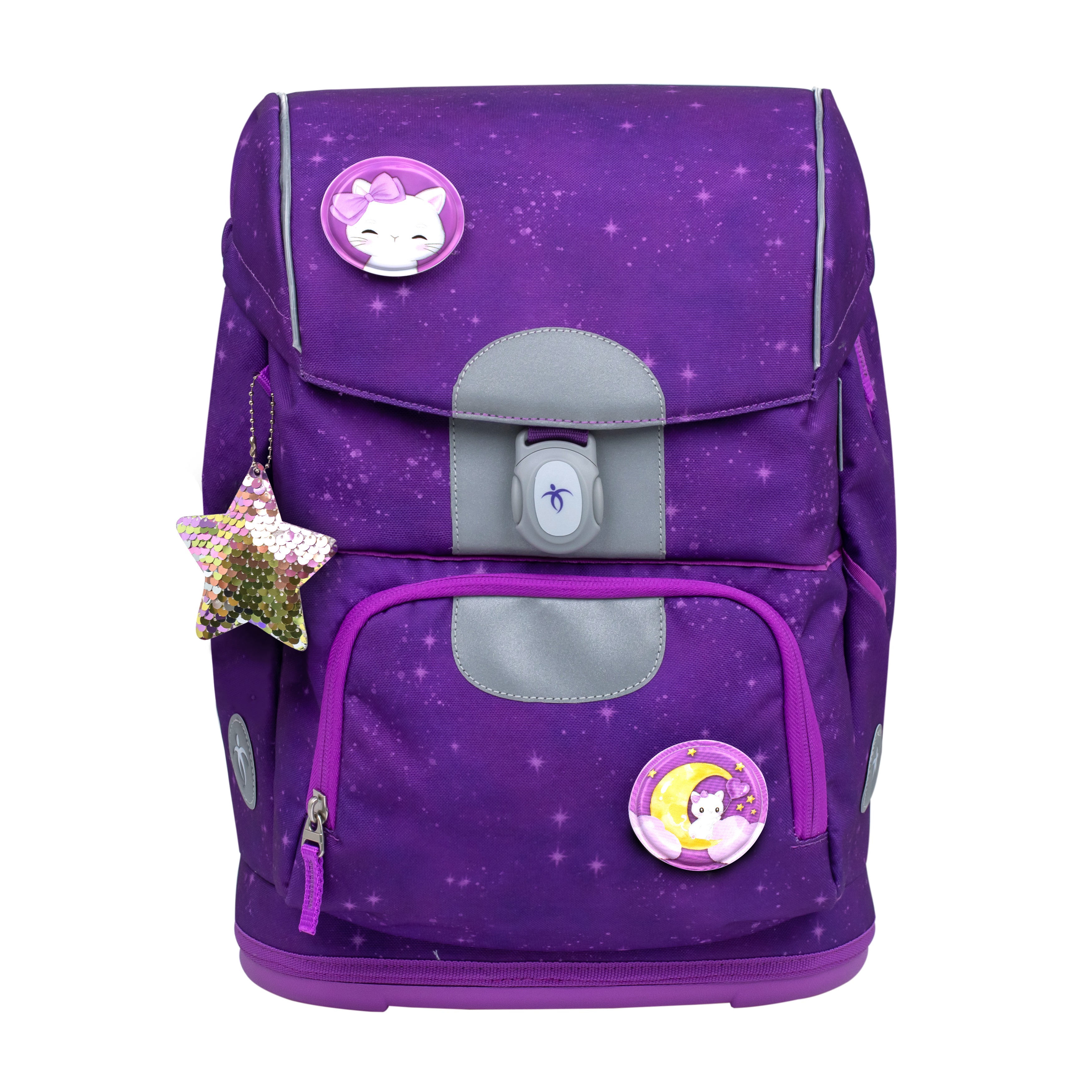 Вместительные внутренние отделения, термокарман для завтрака на передней части ранца, отдельный карман для пенала. Сменные стикеры позволяют ребенку самостоятельно выбрать дизайн и менять его по желанию. Магнитный замок со светоотражателем легко откроет и закроет даже первоклассник. Светоотражающие элементы, повышающие безопасность, по всему периметру ранца.
