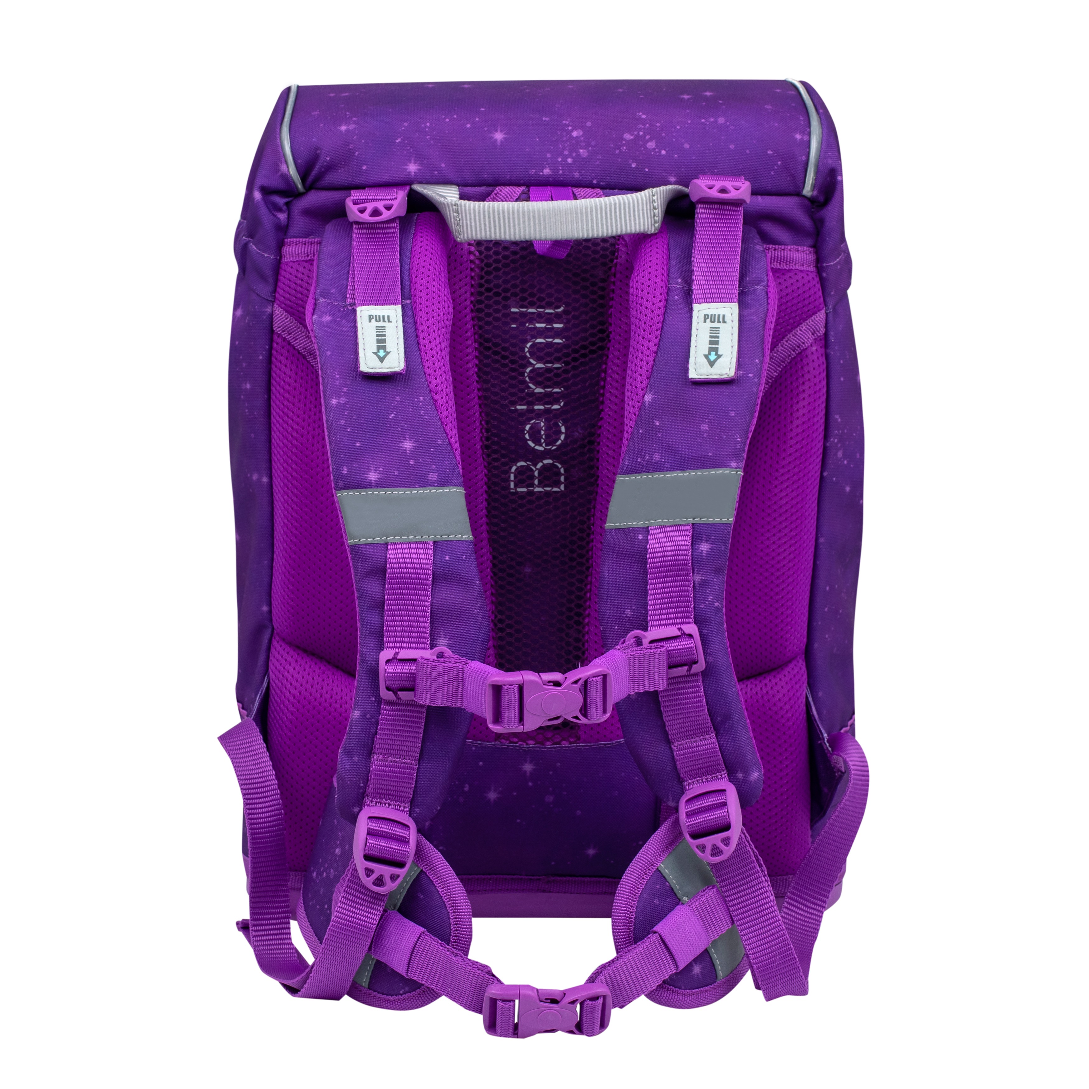 Эргономичный ранец с анатомической спинкой Belmil MOTION для учеников начальной школы. Конструкция спинки с регуляторами вертикального положения снижает нагрузку на позвоночник и бережет осанку школьника. Нагрудный и набедренный ремни надежно фиксируют ранец на спине, регулируемые наплечные лямки, мягкая и удобная ручка для переноски. Дно из прочного пластика защищает вещи от грязи и влаги.