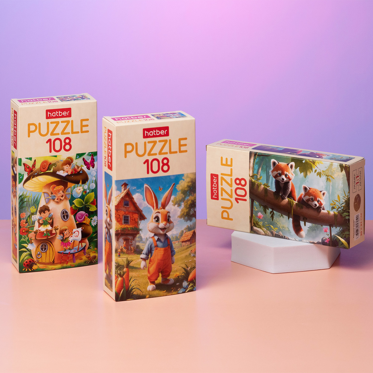 Новая подборка пазлов на 108 элементов — это целая история, собранная из кусочков: милые панды, обаятельный кролик и фантастические феи, которые с нетерпением ждут встречи с вами.