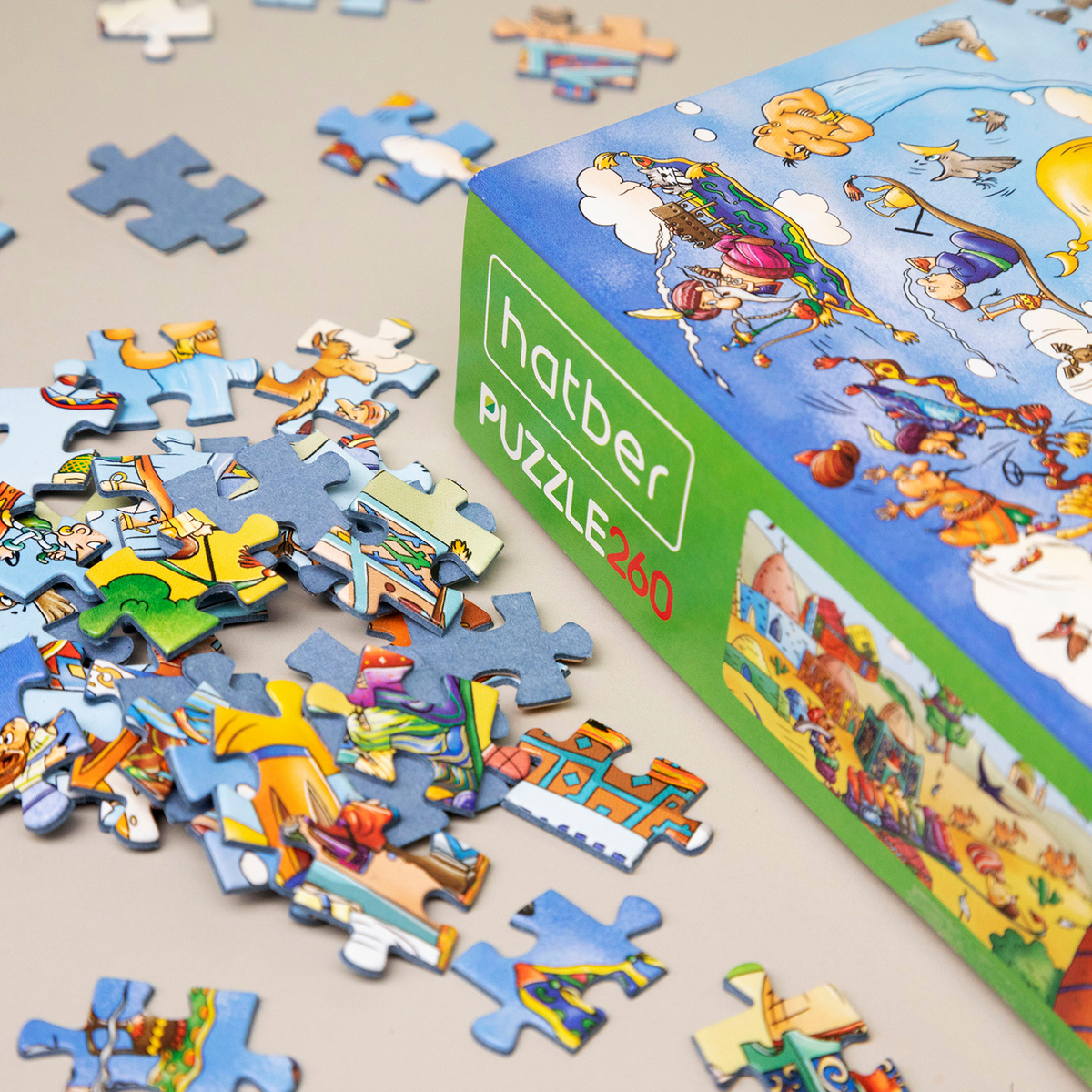 Добро пожаловать в мир восточных сказок, где ковры-самолёты парят над городами, а путешественники отправляются в удивительные приключения! Пазл «На ковре-самолёте» из 260 деталей — это ворота в мир юмора и фантазии.