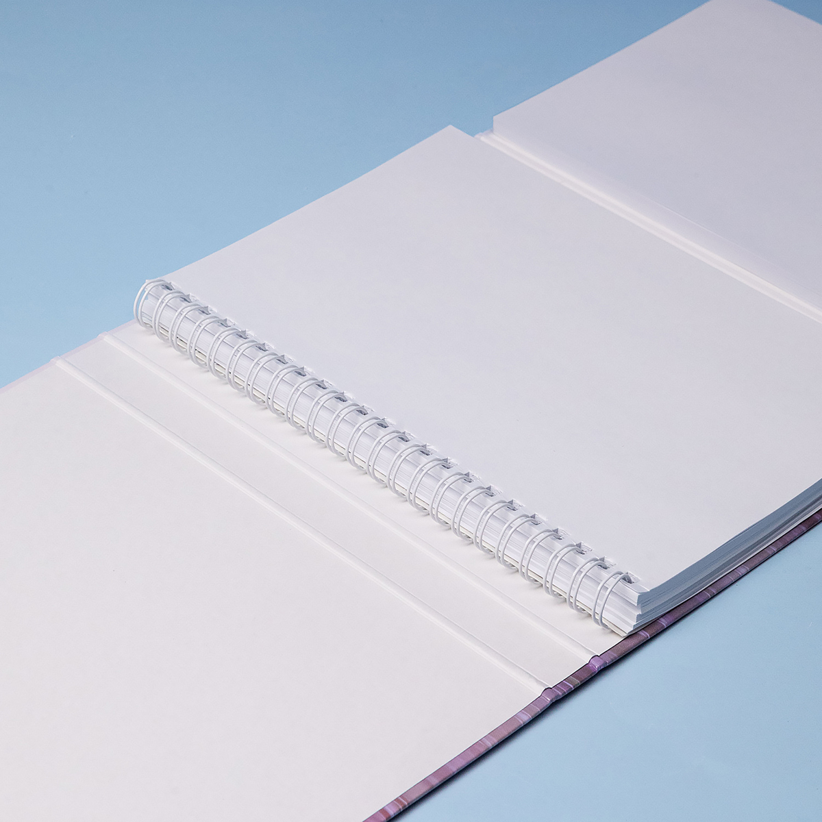 - 2 основных бумажных блока: 80 листов (блок 100 г/кв. м) на металлическом гребне и ещё 50 листов (блок 100 г/кв. м) на отрывной склейке. Нарисовал — оторвал — подарил.