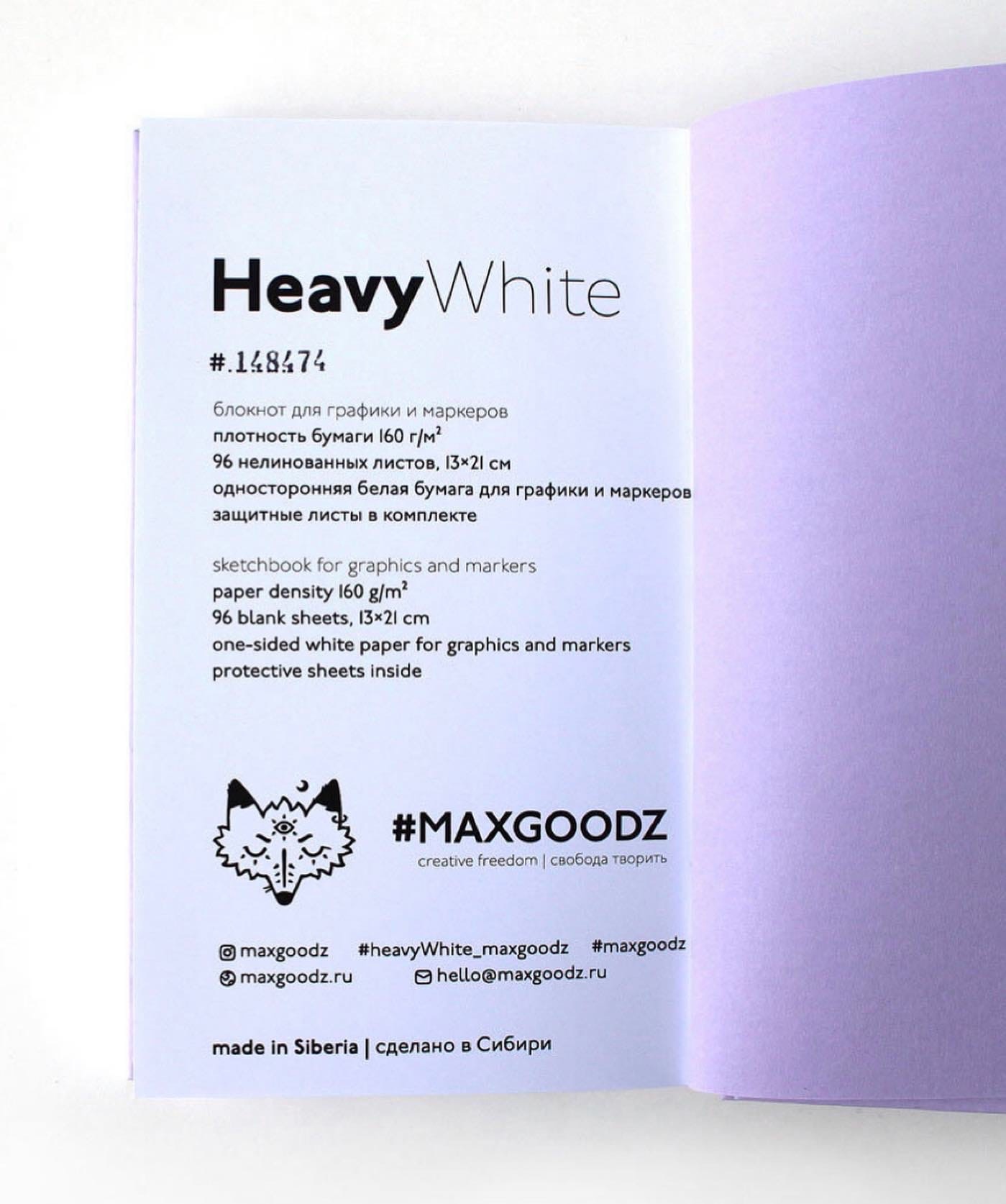 Heavy white — блокнот в твёрдом книжном переплёте для маркеров и графики с белоснежными страницами.