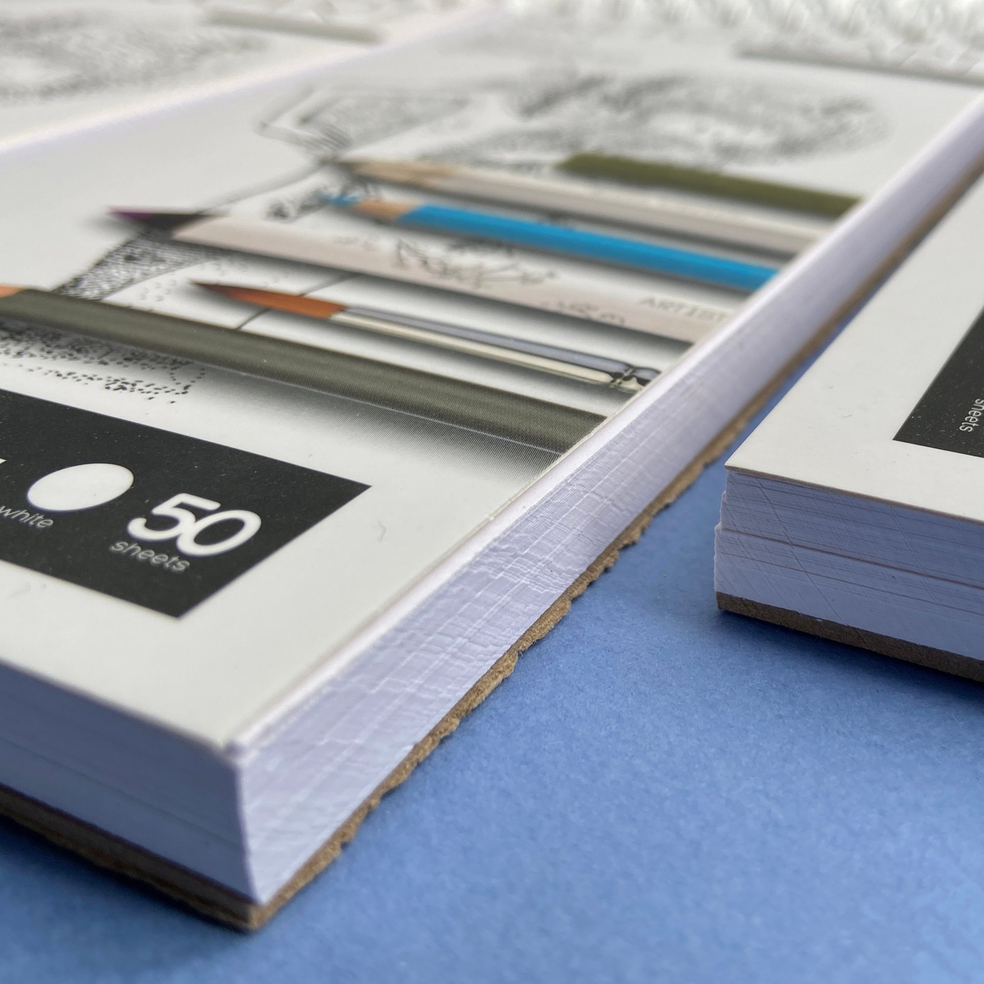 - Листы скетчбука скреплены спиралью по верхнему краю, что позволяет переворачивать их на 180 градусов.