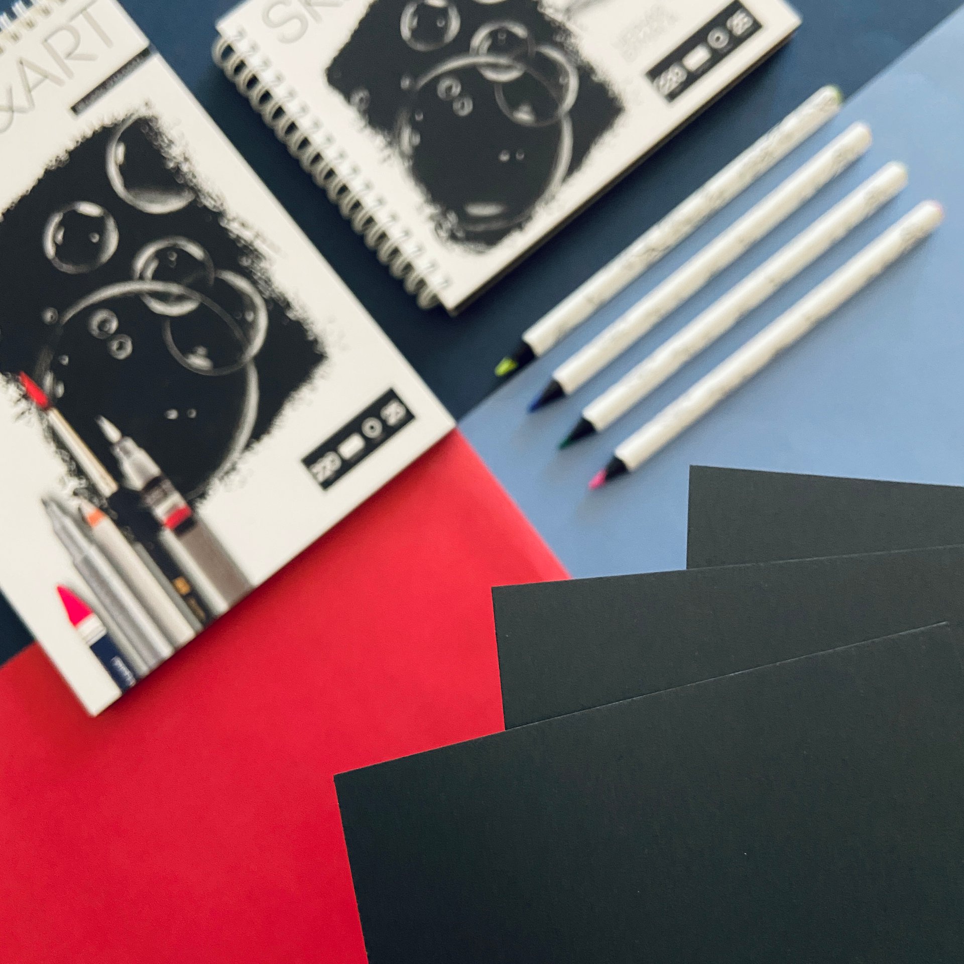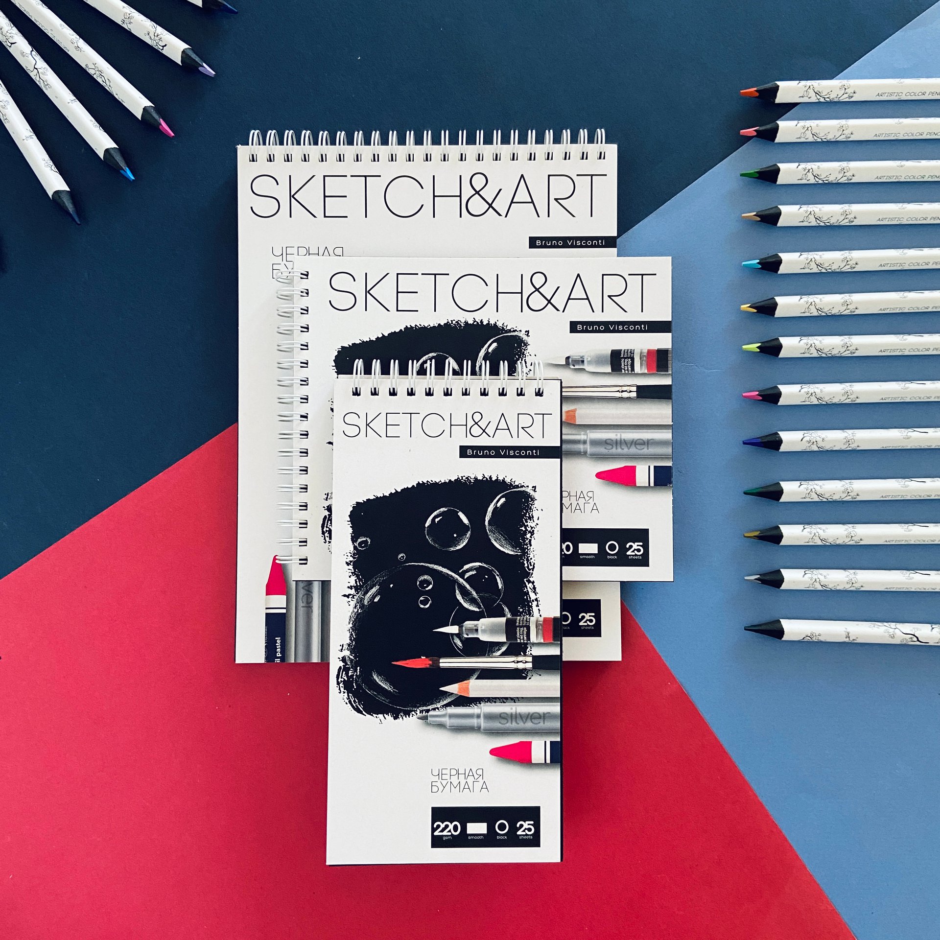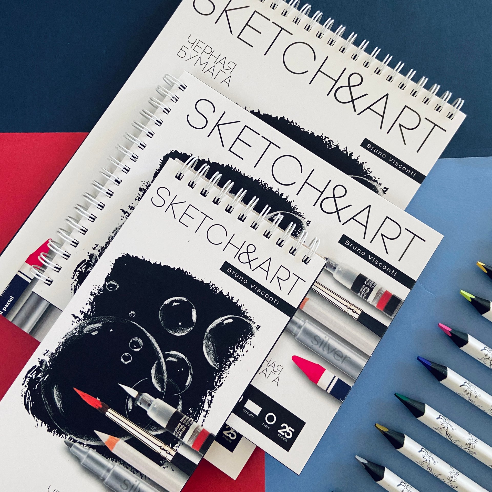 Бумага в скетчбуке плотностью 220 г/кв. м имеет разную фактуру с каждой стороны: гладкую и шероховатую, — что позволяет рисовать на ней различными кроющимися материалами: пастелью, гуашью, акрилом, белым пигментным карандашом, пигментными маркерами, гелевыми ручками, в том числе металлизированными. Такая бумага даёт широкий простор для творческих экспериментов и возможность рисовать теми материалами, которые действительно нравятся!
