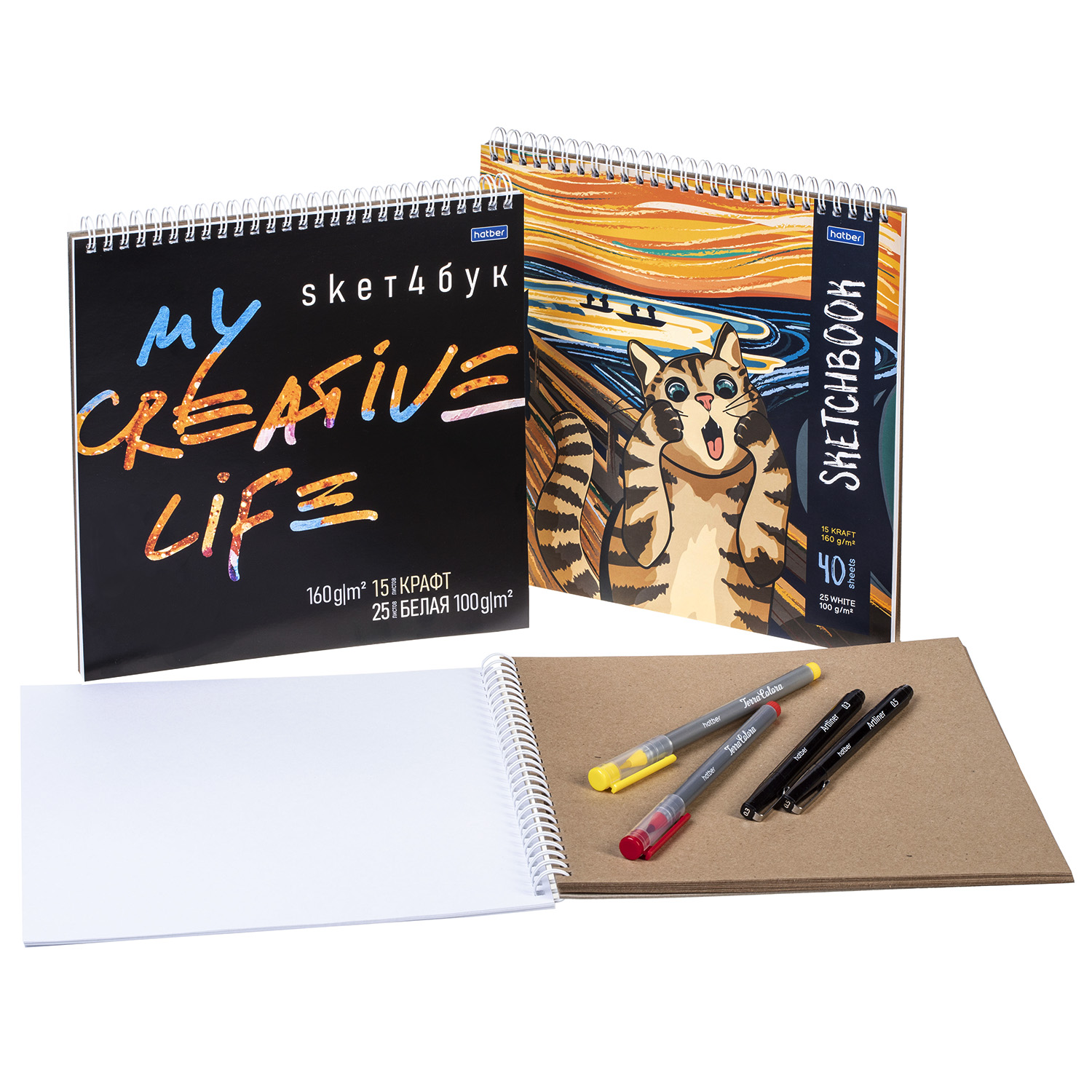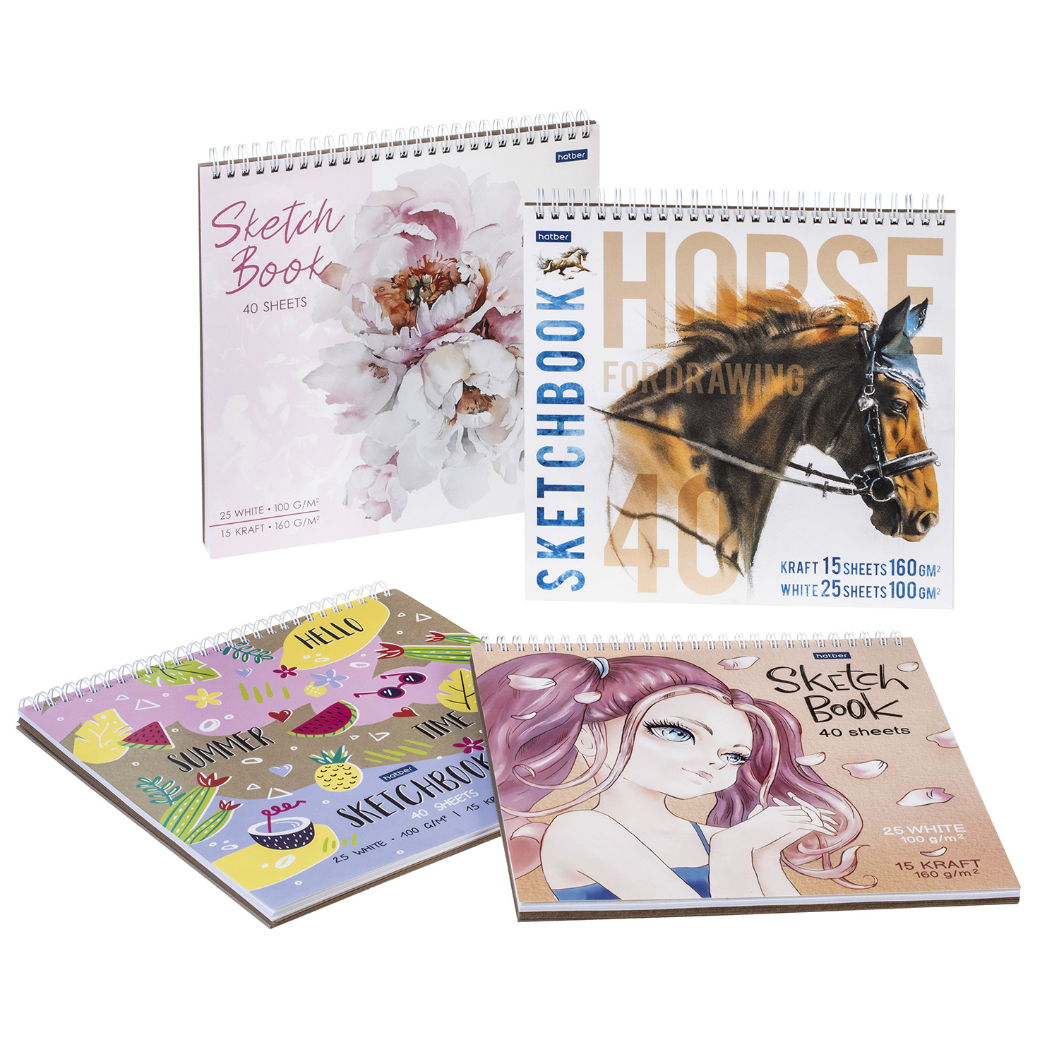Наши новые квадратные premium-блокноты sketchbook А4-формата (240х240 мм) 40 листов на гребне станут вашими постоянными компаньонами. Вы всегда сможете приступить к наброскам, жёсткая подложка позволит делать их на весу в любом месте и в любое время. Используйте скетчи для зарисовок увиденного или для своих идей. Внутренний блок, состоящий из 15 крафтовых и 25 белых листов, даст возможность экспериментировать, пробовать новые и неожиданные материалы, различные стили и техники.