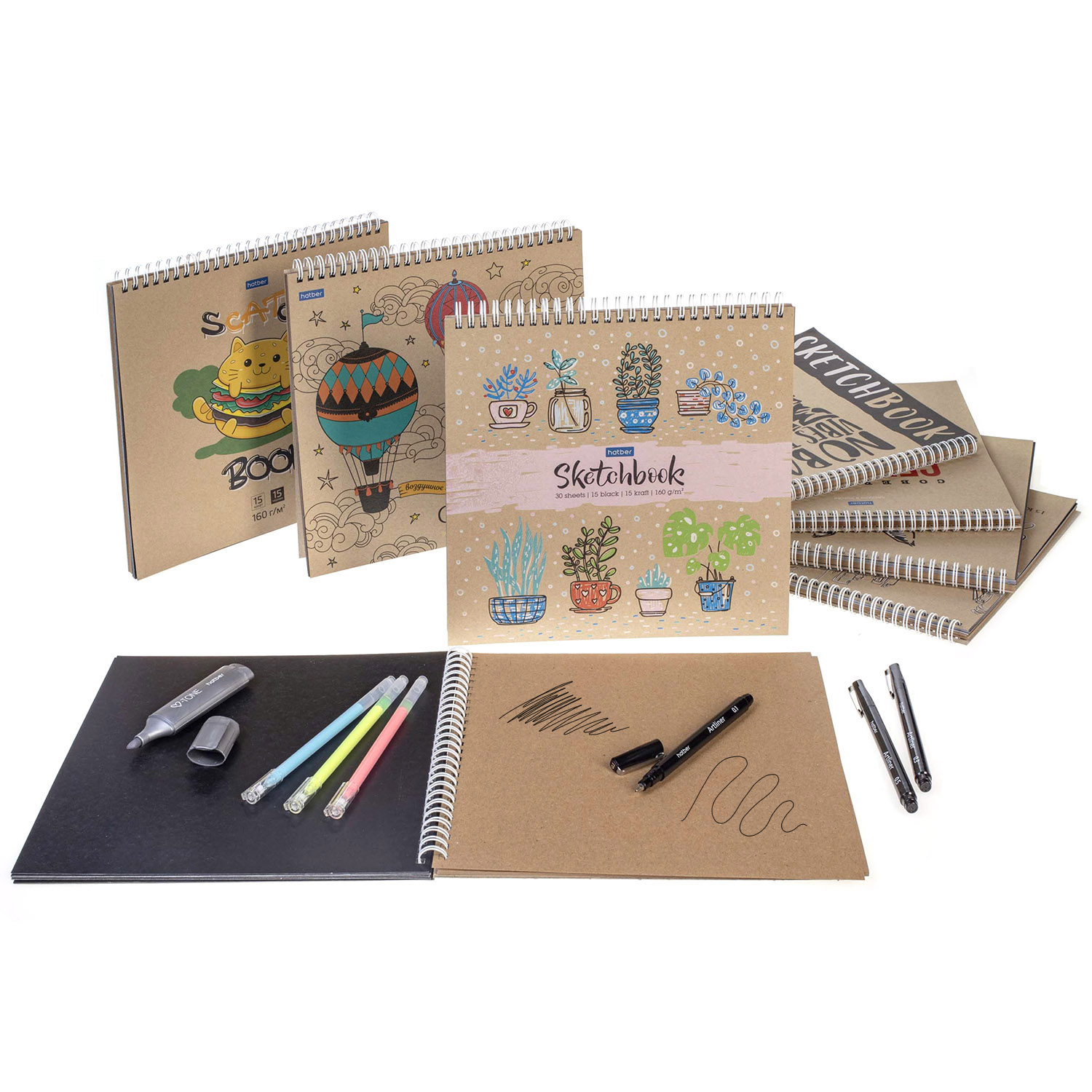 Новые premium-блокноты SketchBook А5-формата 30 листов, из которых 15 листов крафт плюс 15 листов чёрный офсет, без линовки с жёсткой подложкой на гребне. Это серия скетчей позволит вам расширить свои творческие горизонты.