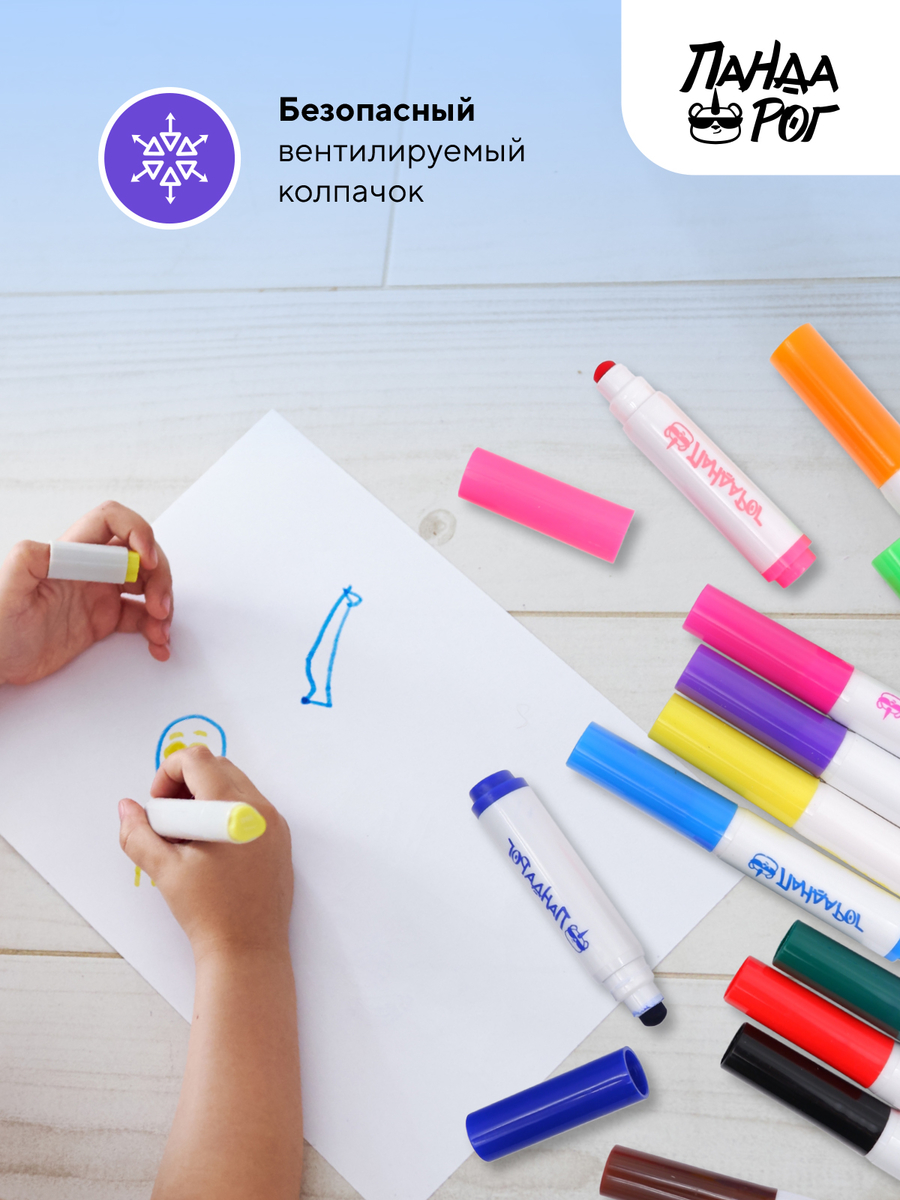 Смываемые фломастеры с противоударным наконечником для малышей от «Пандарог»