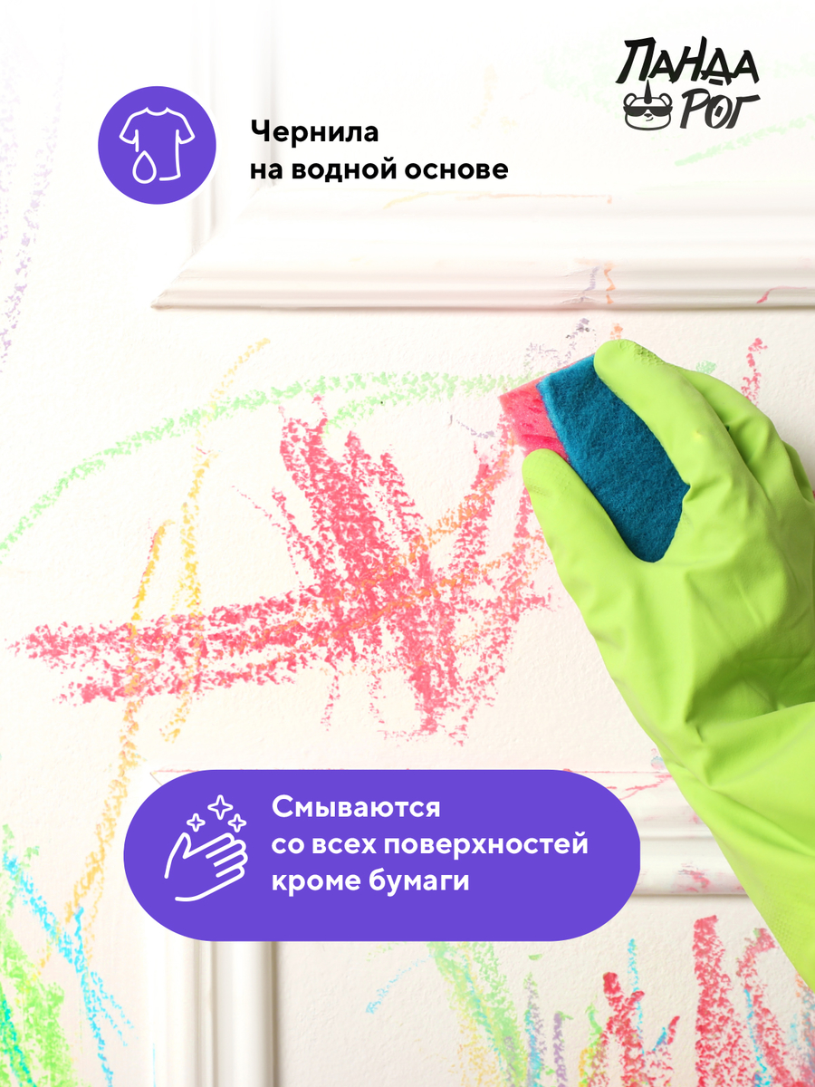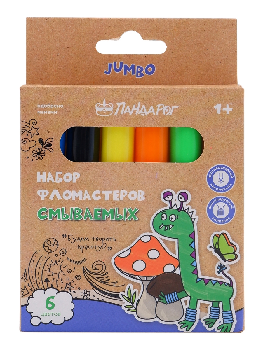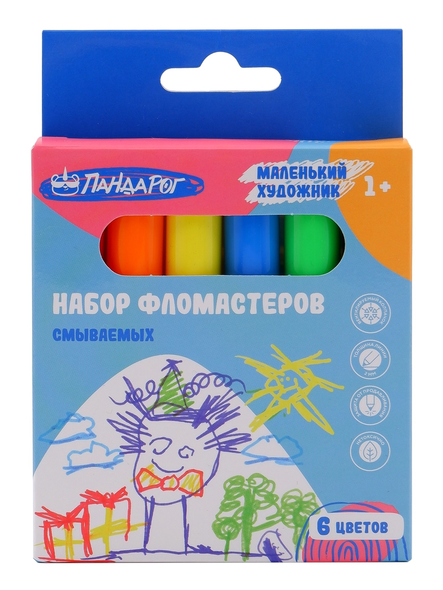 Смываемые фломастеры от «Пандарог» созданы специально для детей от одного года, чтобы первый художественный опыт приносил только радость! Нетоксичные чернила на водной основе легко отмываются с любых поверхностей, будь то детские ладошки, одежда или рабочий стол — а значит, можно позволить маленькому творцу рисовать где угодно, не переживая о последствиях.