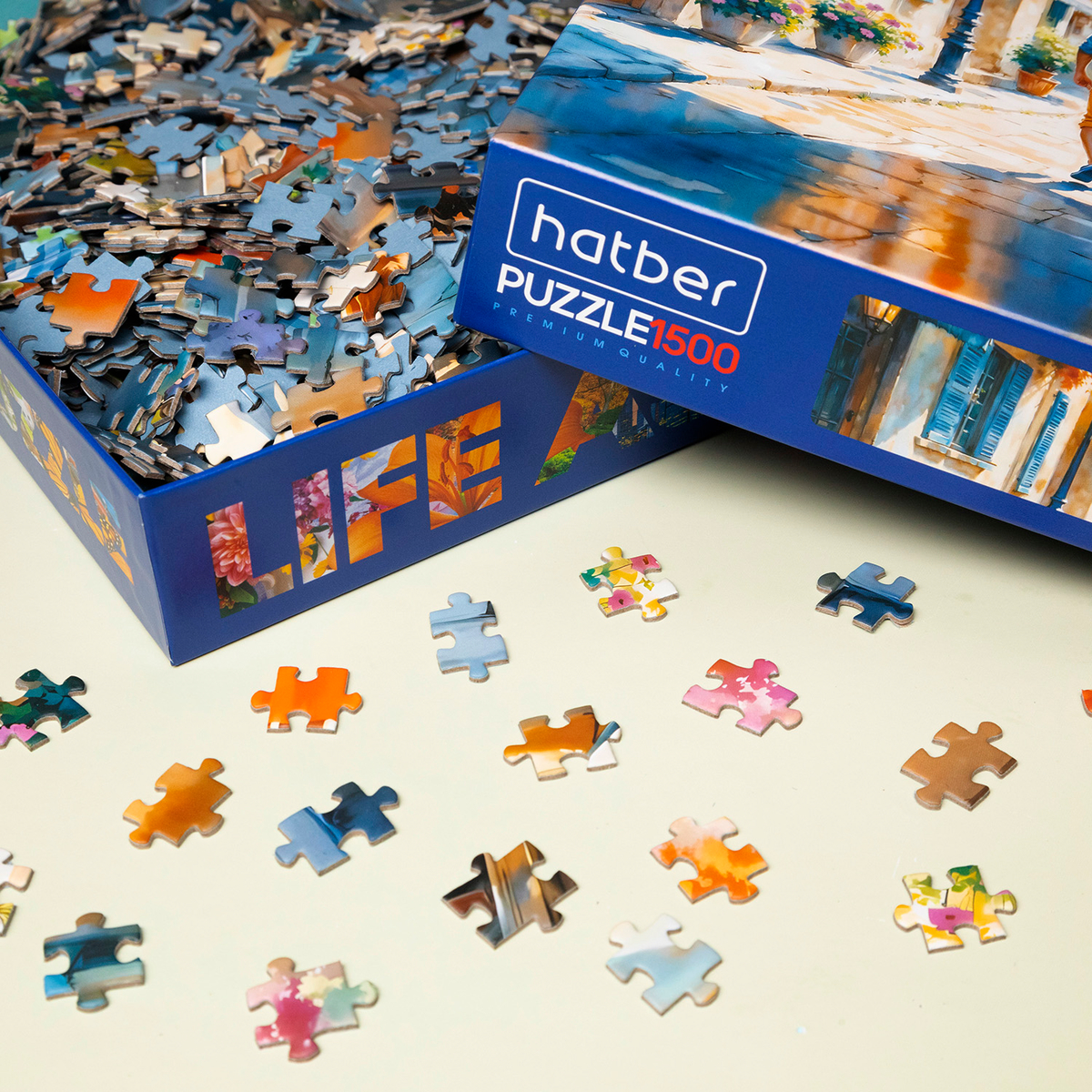 Всё это — в акварельном стиле: мягкие размывы, свет скользит по брусчатке, тени — как вздох. Картинка будто написана на свежем воздухе и ещё дышит моментом. Каждый фрагмент добавляет детали: фактуру стен, отблески на камнях, мягкие переходы цвета, благодаря которым изображение получается почти живописным. Такой пазл хочется собирать медленно, наслаждаясь процессом — он идеально подойдет для тех, кто любит атмосферные городские пейзажи и ценит моменты.