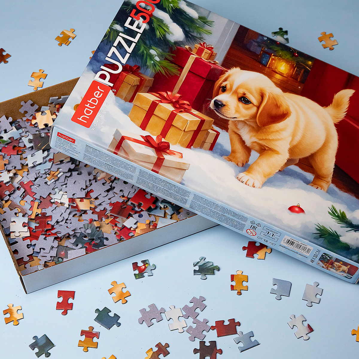 Пазл «Любопытный щенок» расскажет, как один маленький шаг может стать началом чего-то чудесного. Любопытный малыш-лабрадор выглядывает из двери, встречая заснеженный двор и неожиданные подарки. Каждый элемент пазла приносит частичку зимней магии.