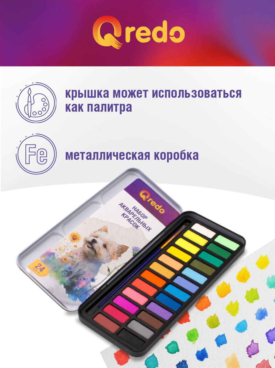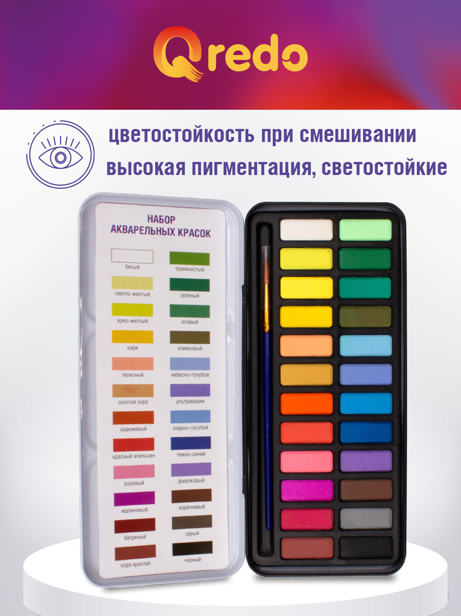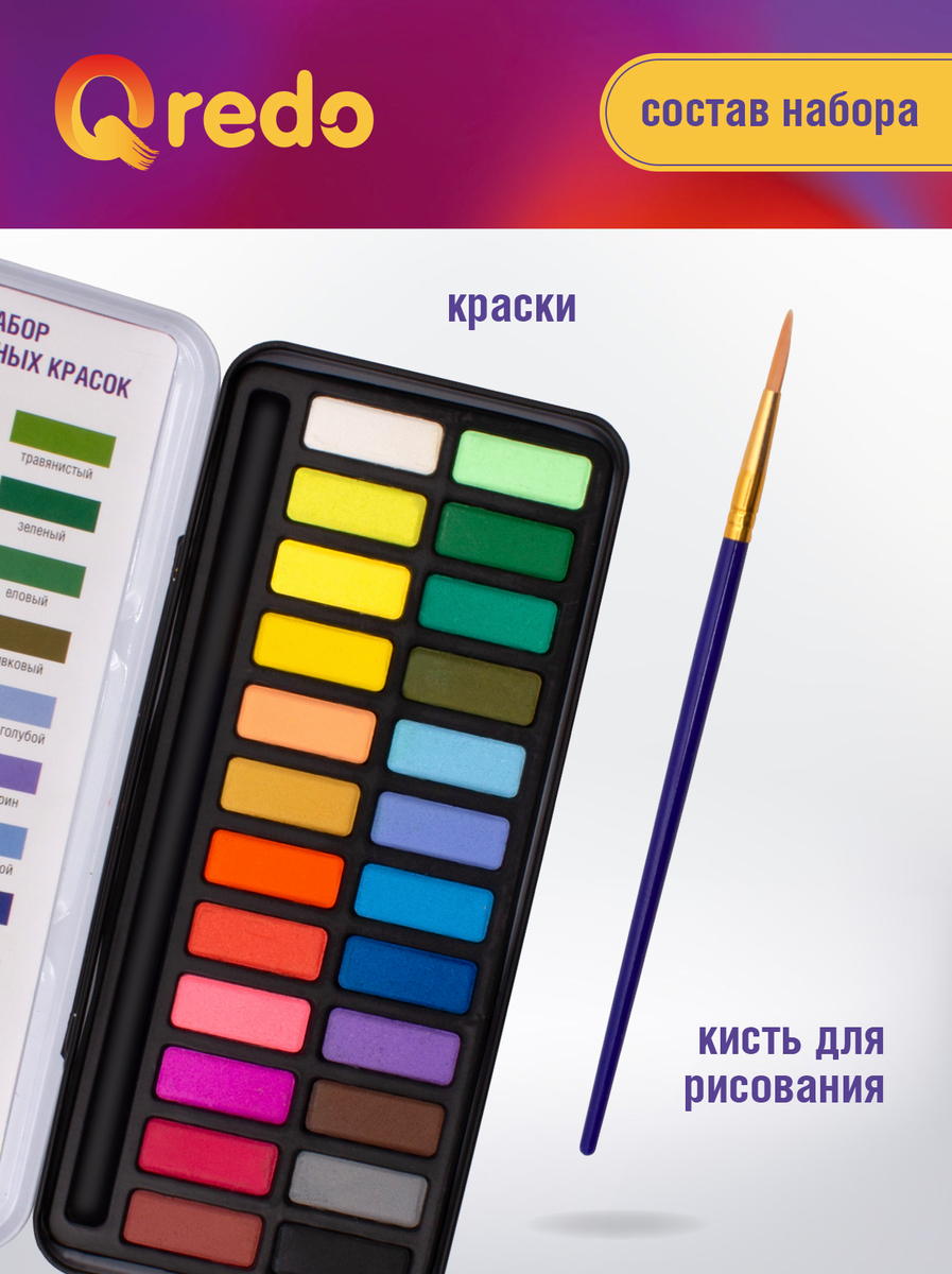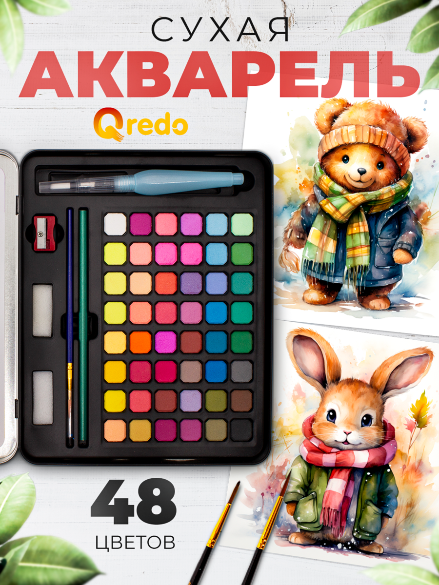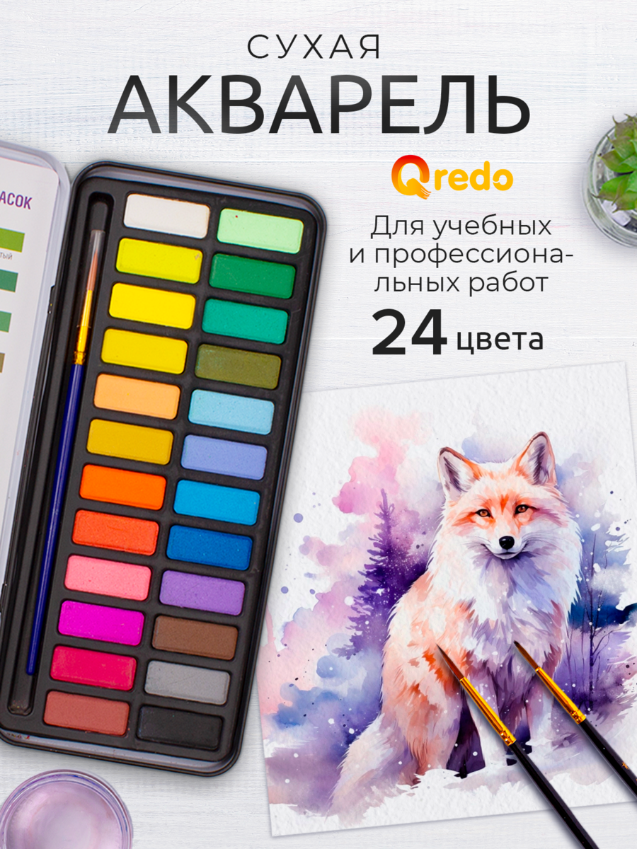 Неважно, где настигнет вдохновение — полупрофессиональная сухая акварель QREDO в компактном металлическом кейсе создана для зарисовок и этюдов. Насыщенные пигменты ложатся на бумагу ровным слоем, прекрасно смешиваются между собой и быстро высыхают, сохраняя яркость цветов.