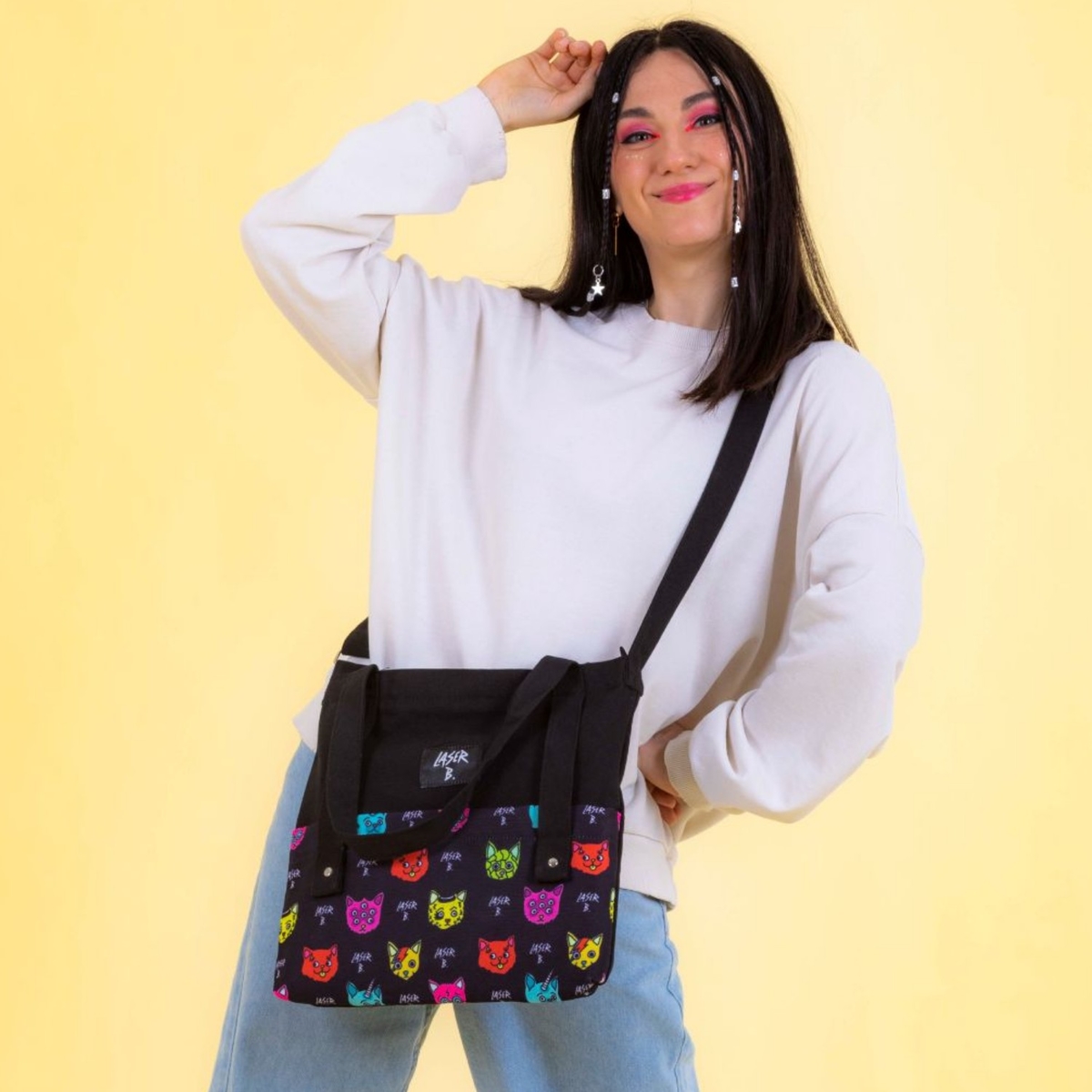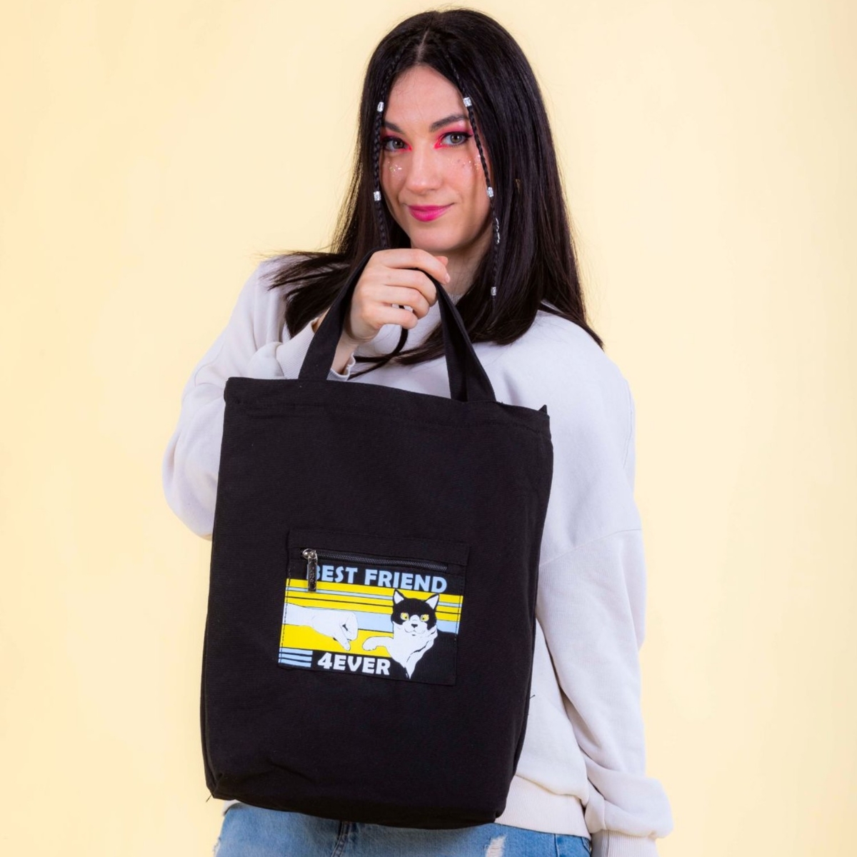 Best Friends — шопер с нотками инди-стиля. Стильные полоски на лицевой стороне, удобный полосатый ремешок, котики и дружба!