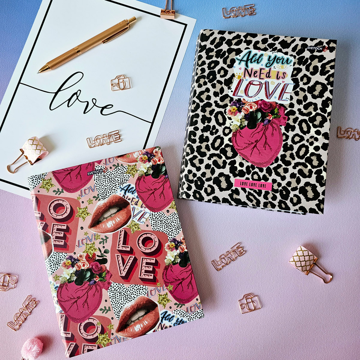 «…Ты ещё не знаешь». А чтобы узнать, достаточно взглянуть на обложки тетрадей SVETOCH «Такая любовь» со сменным блоком на кольцах! Дизайны в виде девичьих коллажей с сердцами и надписью LOVE сразу зададут романтический и драйвовый вайб!