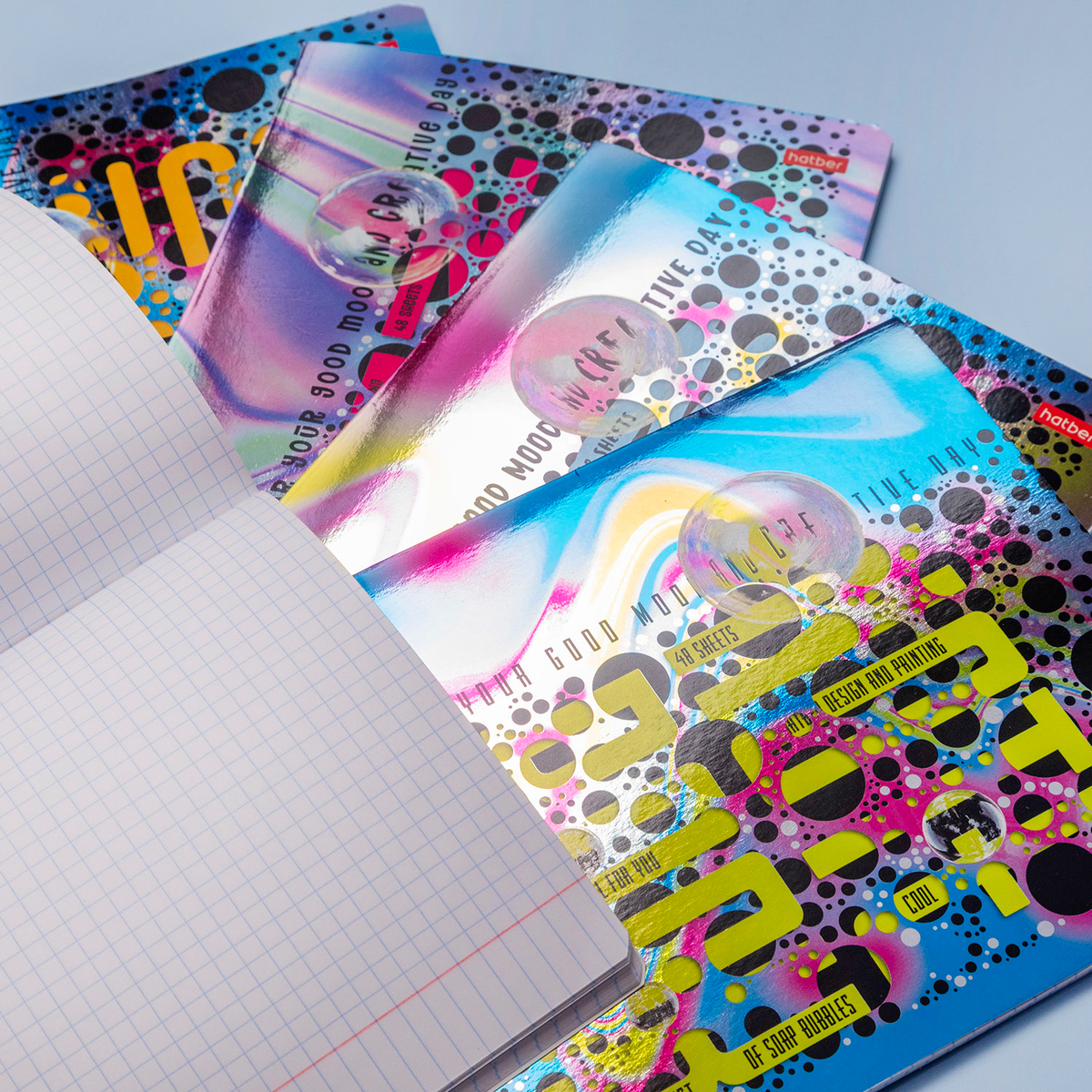Без сомнений: мыльные пузыри вдохновили дизайнеров на крутейшие динамичные композиции! И серия тетрадей Bubbler Book от Hatber не исключение!