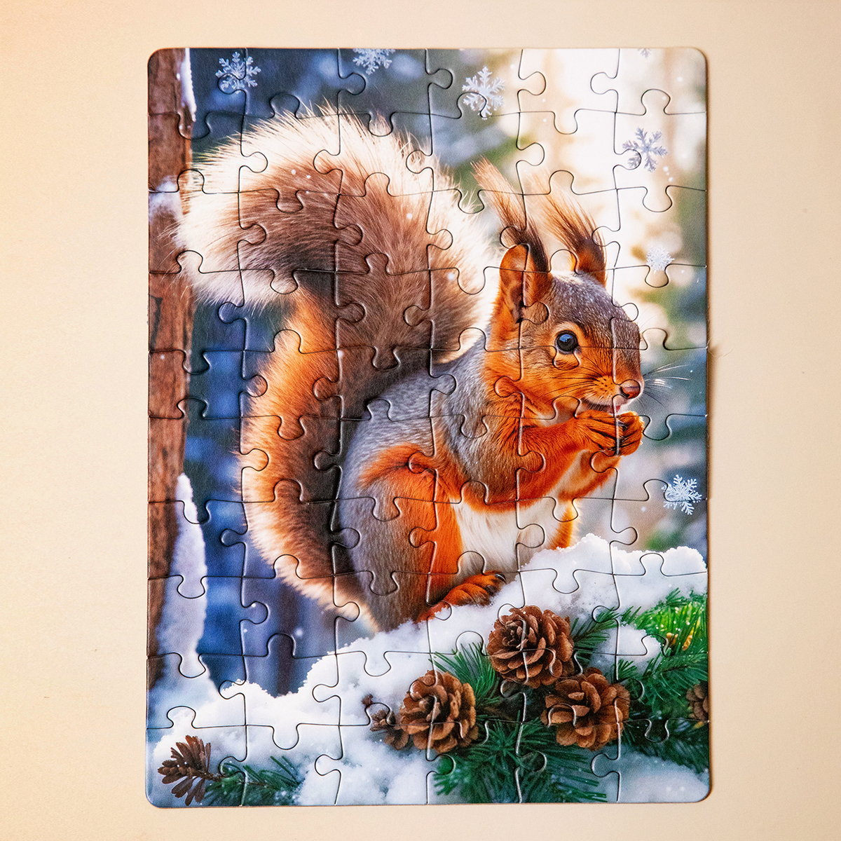 «Праздник к нам приходит» — классика зимнего чуда. Дед Мороз, дети, подарки и огоньки — вся магия Нового года. «Пушистый хвостик» — ещё одна зима, но в лесу. Пушистая белочка с орешком, снежные шишки — природа тоже готовится к празднику. Эти пазлы хочется собирать, укутавшись в плед.